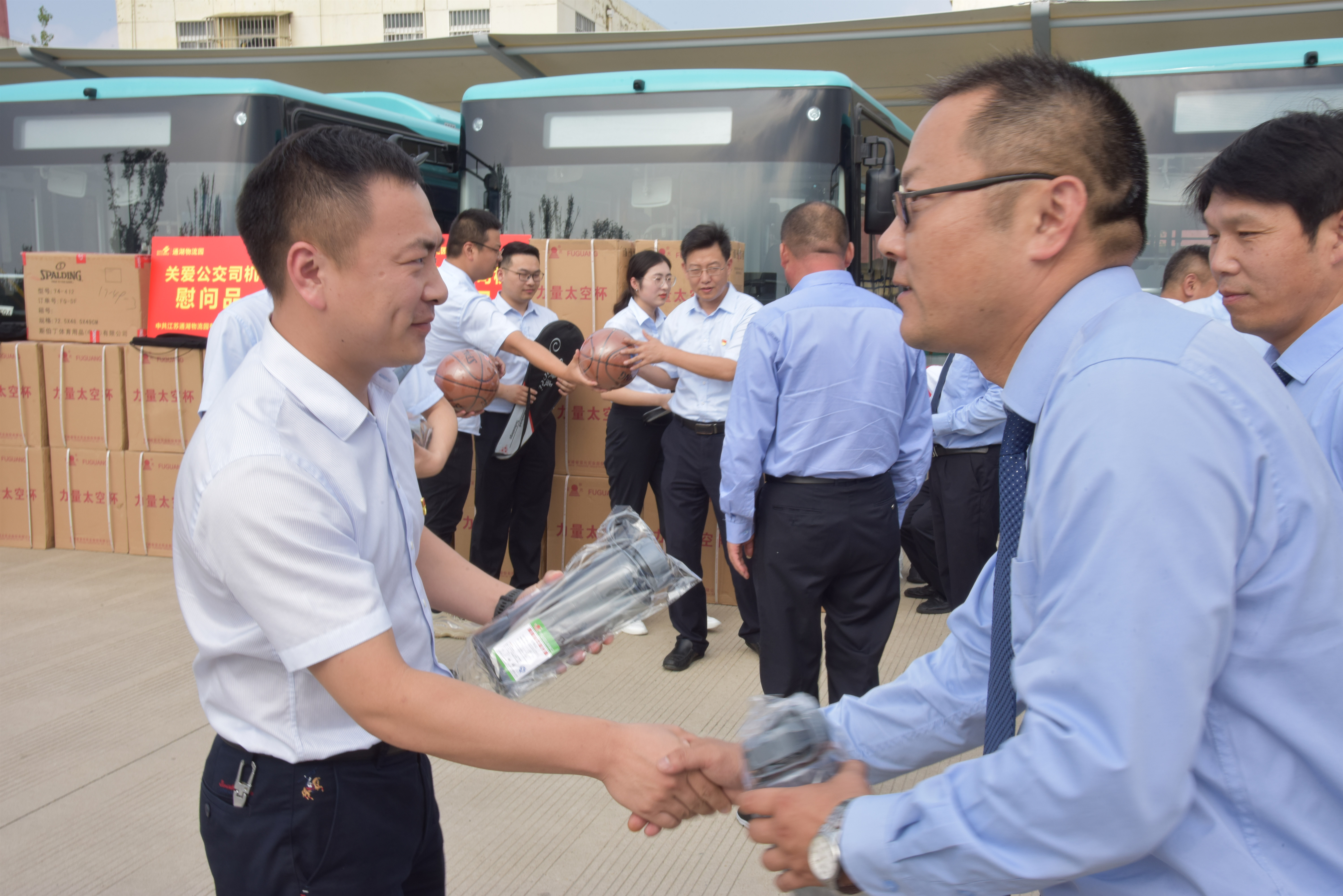 公交駕駛員作為一個(gè)特殊的職業(yè)群體,擔(dān)負(fù)著繁重的公共交通運(yùn)輸任務(wù),工作時(shí)間長(zhǎng)、精神高度集中、勞動(dòng)強(qiáng)度大、安全責(zé)任重、服務(wù)要求高。為關(guān)懷公交駕駛員的身心健康、豐富業(yè)余生活,通湖物流園黨支部與公交場(chǎng)站支部共建,在黨員活動(dòng)日當(dāng)天為一線駕駛員送上水杯、羽毛球拍、籃球等慰問(wèn)品,為炎熱的夏天送上一絲絲清涼。最后,通湖物流園與公交公司的同事們還開(kāi)展了籃球友誼賽,增進(jìn)雙方友誼。