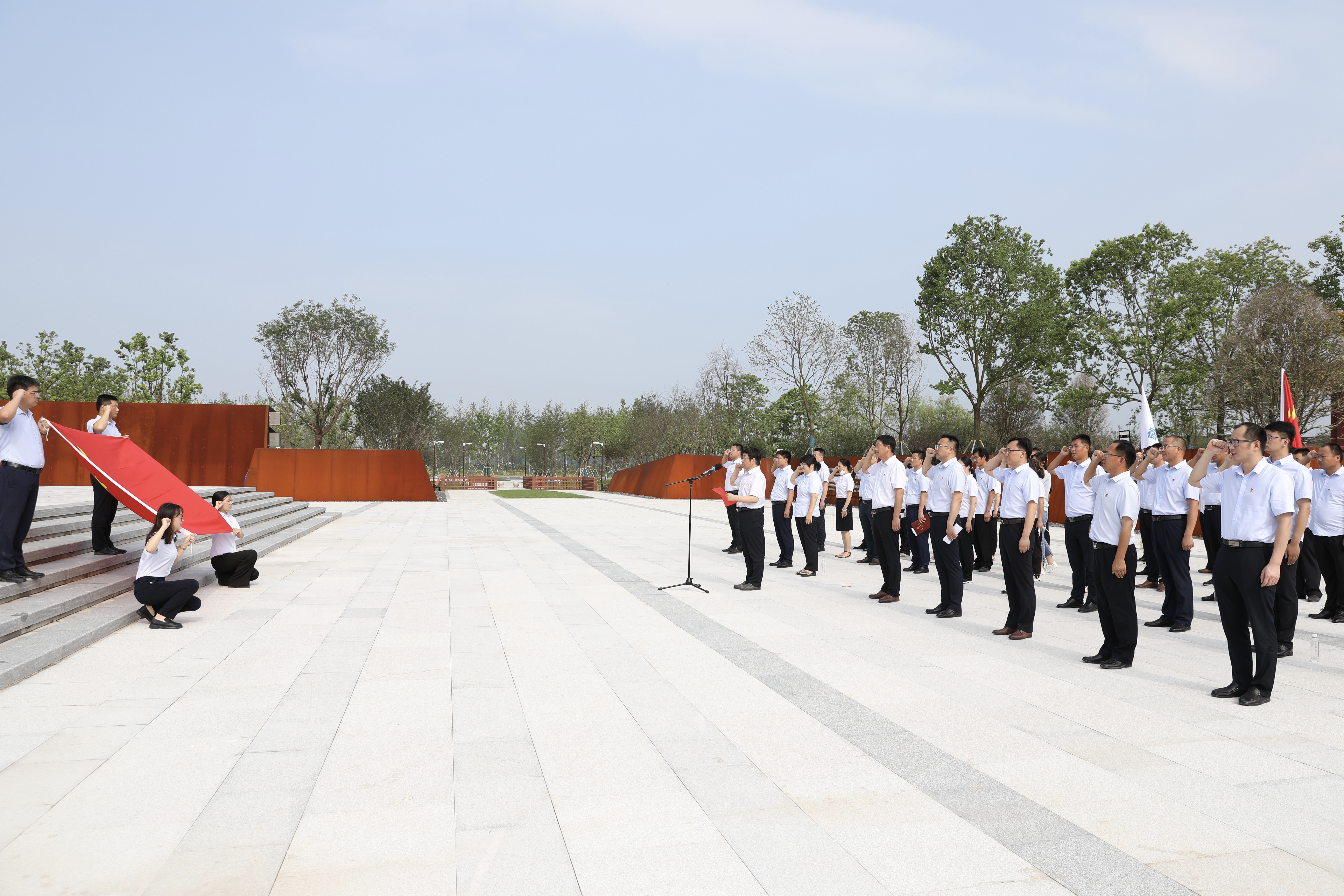 在基地講解員的帶領(lǐng)下,大家實(shí)地參觀了陳列展覽館及雪楓軍政大學(xué)、拂曉報(bào)社等革命舊址。面對(duì)莊嚴(yán)的新四軍四師暨淮北抗日民主根據(jù)地將士名錄墻,全體黨員深切緬懷,向革命先輩敬獻(xiàn)花籃,并面對(duì)黨旗重溫入黨誓詞。隨后,公司一線的優(yōu)秀黨員代表和退伍軍人應(yīng)急救援隊(duì)隊(duì)長(zhǎng)結(jié)合營(yíng)運(yùn)服務(wù)和安全生產(chǎn)工作分別作了發(fā)言。