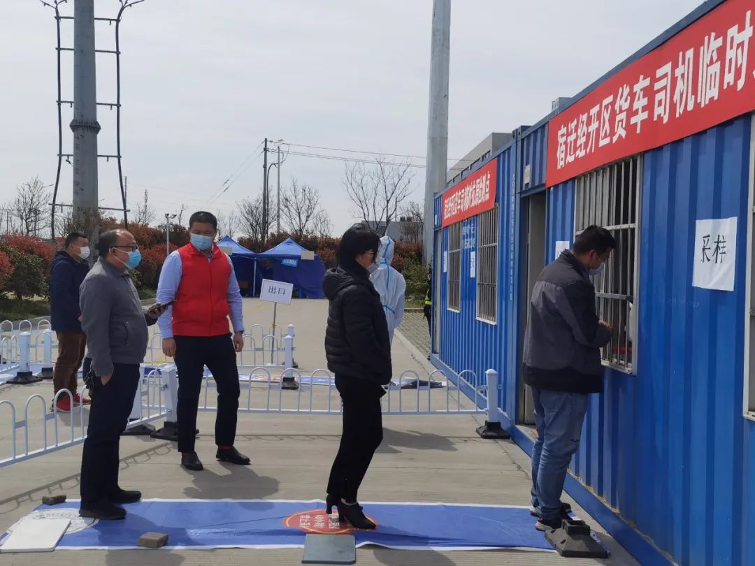 4月1日5時至4月6日5時,宿遷在中心城區(qū)實(shí)施靜態(tài)管理后,通湖物流園全面落實(shí)管控措施,黨員干部職工迅速行動起來,在凌晨4時抵園后,立即對園區(qū)出入口進(jìn)行封閉,設(shè)立“通湖物流黨建聯(lián)盟愛心驛站”,提供防疫物資,勸返過往車輛及人員,并對已入園的駕駛員及工人進(jìn)行登記個人信息、查看“宿康寶”和核酸采樣,堅(jiān)決把好園區(qū)關(guān)口。