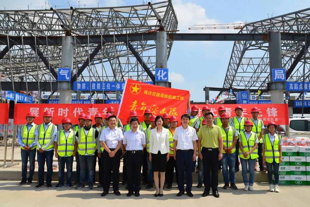 6月27日下午,團市委書記耿曉云及部分團干部代表來到宿遷高鐵綜合客運樞紐項目建設現(xiàn)場,走訪慰問高鐵一線青年職工,并為宿遷交通集團高鐵配套工程青年突擊隊授旗。