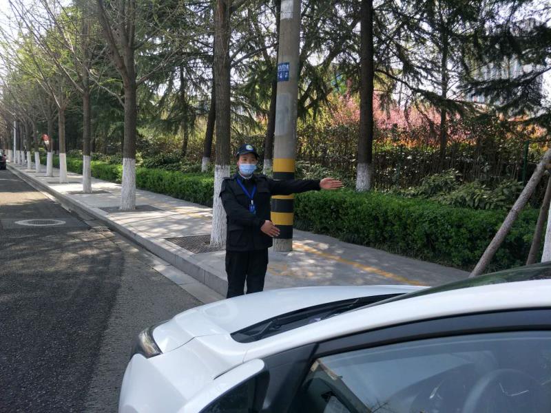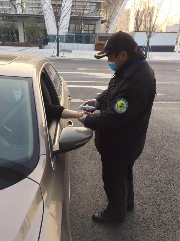每天早上上班前,趙愛軍自己測量體溫,然后戴好口罩、手套;工作期間,發(fā)現(xiàn)有人員聚集情況,他及時過去勸導疏散;下班后,他細心地對停車場進行消毒。