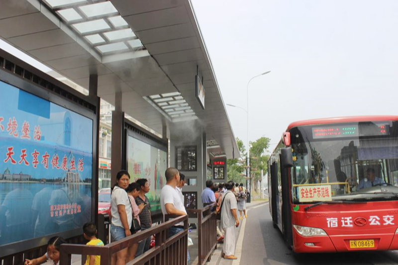 此外,公交公司在市區(qū)多處候車亭安裝了噴霧降溫裝置。該裝置能在功能區(qū)范圍內(nèi)使環(huán)境溫度下降5°C到8°C,在凈化空氣的同時祛除人們身上的暑氣,讓市民告別“候車熱、候車曬”,提升乘坐公交車的幸福感。