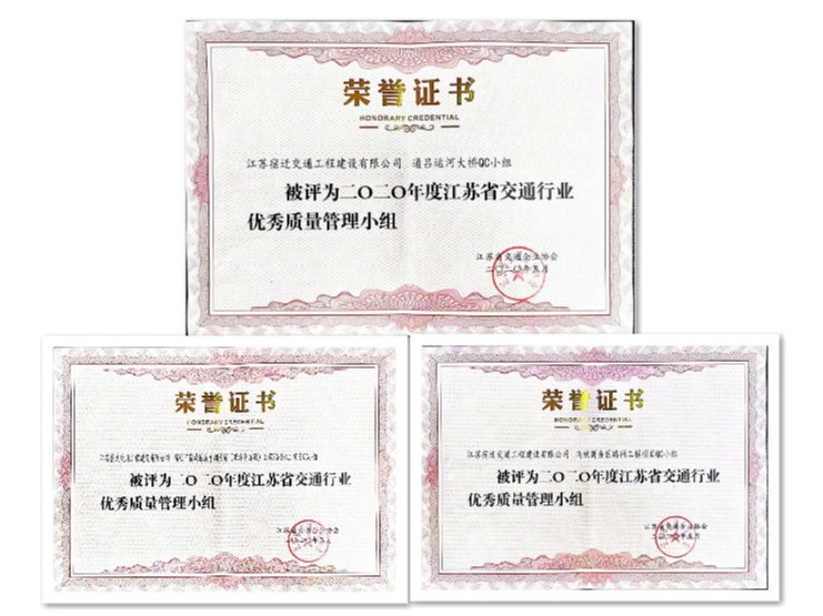 今年以來,宿遷交建獲得2017-2019年度宿遷市文明單位、宿遷市三八紅旗集體、宿遷市勞動(dòng)競(jìng)賽有功集體、省交通協(xié)會(huì)質(zhì)量信得過班組等榮譽(yù)稱號(hào),通過綠色公路發(fā)展研發(fā)中心認(rèn)定,1項(xiàng)科研成果經(jīng)行業(yè)部門成果鑒定為“國(guó)際先進(jìn)”,1項(xiàng)團(tuán)體標(biāo)準(zhǔn)獲省交通企業(yè)協(xié)會(huì)立項(xiàng)。