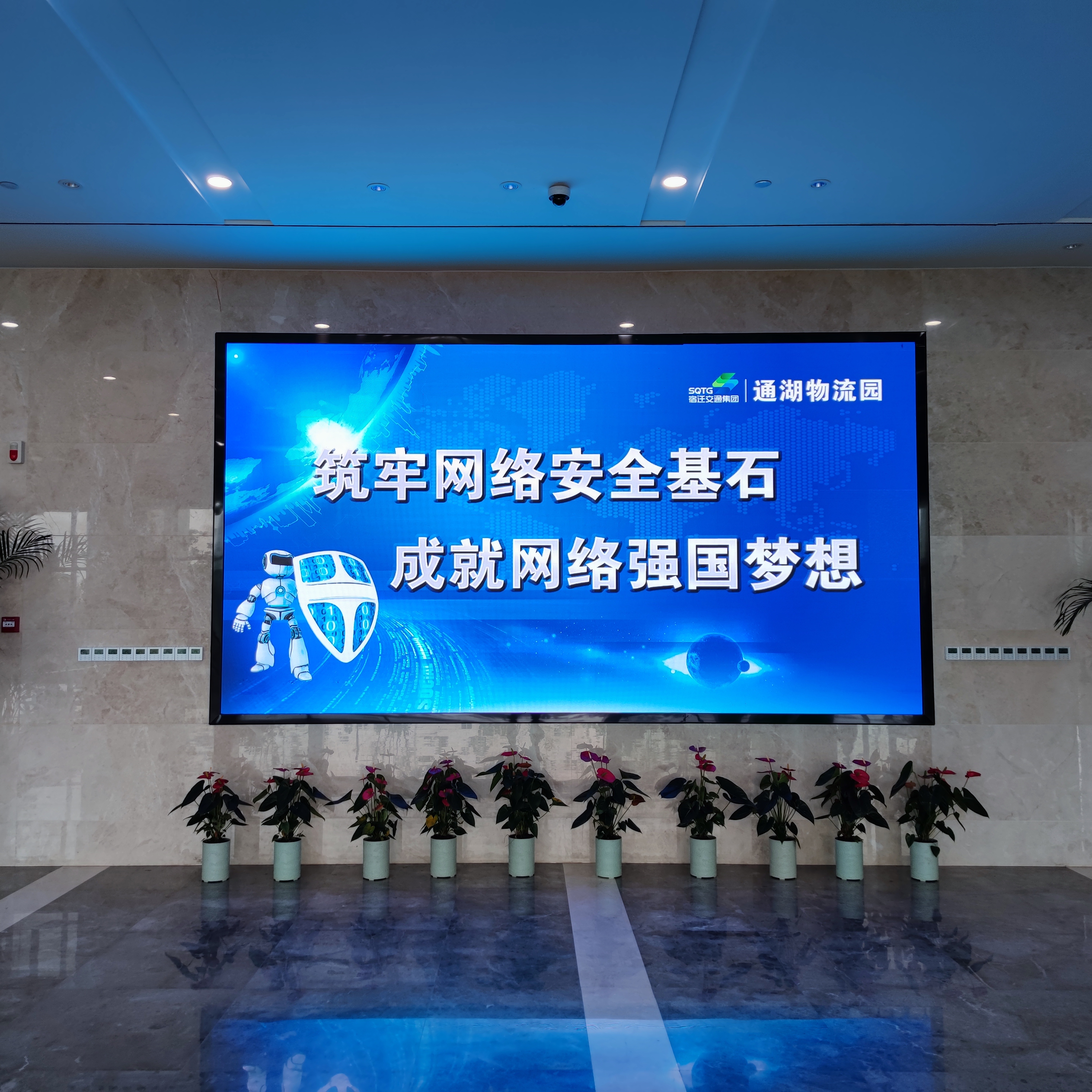 通湖物流園在物流大廈大廳及停車場LED大屏上持續(xù)投放網(wǎng)絡(luò)安全宣傳圖片,并在園區(qū)內(nèi)醒目位置布置網(wǎng)絡(luò)安全宣傳橫幅,進一步提高園區(qū)及物流大廈入駐企業(yè)的網(wǎng)絡(luò)安全防范意識。