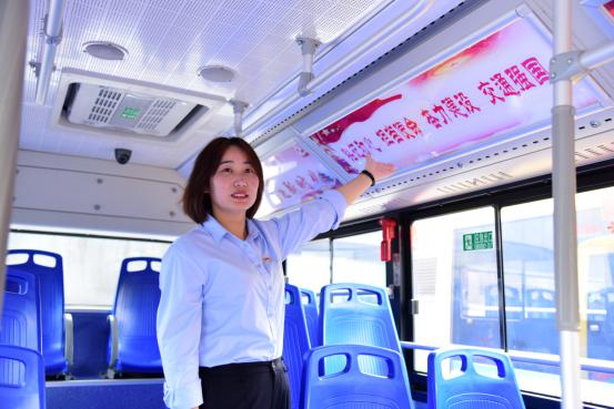 “新時代先鋒號”打造了以學(xué)習(xí)十九大精神及習(xí)近平新時代中國特色社會主義思想的“傳習(xí)車廂”。車身側(cè)面以天安門城樓和華表為背景設(shè)計并附加車隊 “做時代先鋒,創(chuàng)行業(yè)楷模” 口號;車尾部以天安門城樓和高鐵為背景設(shè)計;車廂內(nèi)部燈箱內(nèi)標(biāo)語均采用了十九大相關(guān)精神和習(xí)近平總書記部分語錄;車頂覆蓋國旗圖案,既能激發(fā)乘客的愛國情懷,也能讓大家提前感受到國慶的喜樂。除此以外,該線路所有車輛首次采用中英文雙語報站,為接送南來北往的旅客提供了更加細(xì)致的服務(wù),隨車駕駛員均由先進(jìn)典型人物組成,確保人員隊伍在思想認(rèn)識、服務(wù)水平和業(yè)務(wù)能力等方面都是優(yōu)中之優(yōu)。