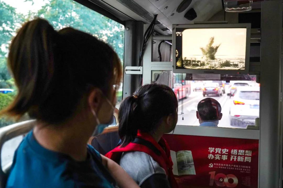 一輛公交車就是一個(gè)黨史“流動(dòng)小課堂”。近日,在宿遷市103路公交車上,乘客正在觀看車內(nèi)車載電視學(xué)習(xí)黨史,重溫紅色記憶。