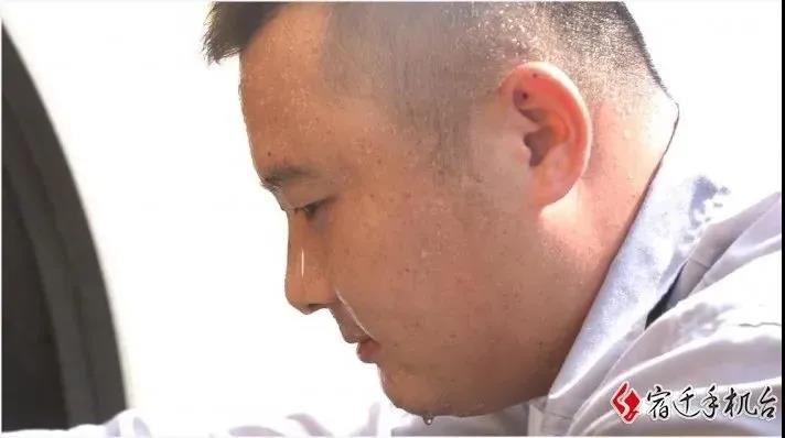 烈日下頂著近四十度的高溫,為車輛做保養(yǎng),卸輪胎,換剎車油,豆大的汗珠順著李征臉頰流下,來不及用沾滿油漬的雙手擦一擦,盡管這樣李征絲毫沒有一點(diǎn)馬虎。