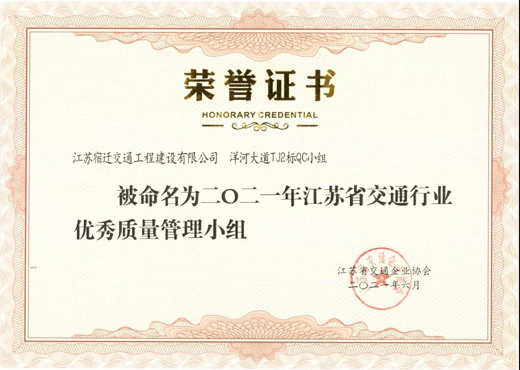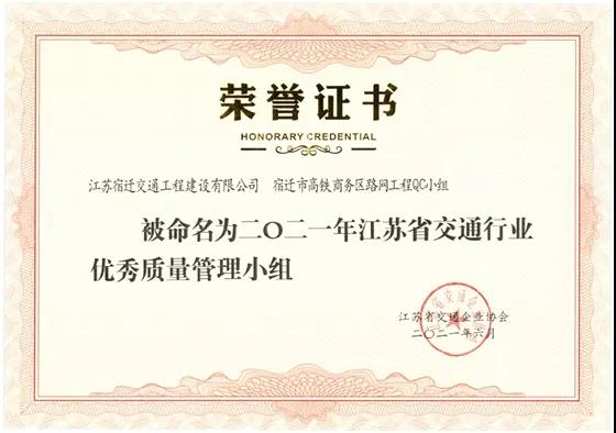 【宿遷交建】宿遷交建三項(xiàng)目榮獲“江蘇省交通行業(yè)優(yōu)秀質(zhì)量管理小組”稱號(hào)
