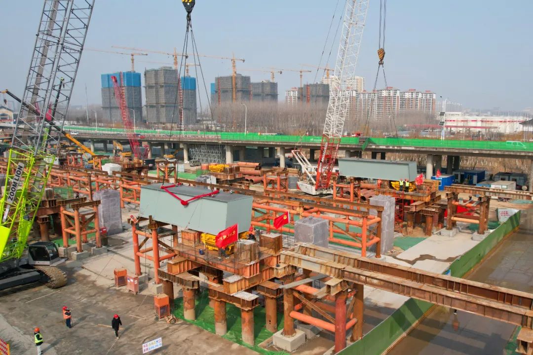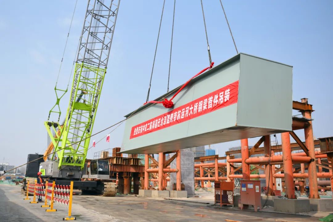 【高鐵公司】北京路快速化改造工程跨京杭運河特大橋首節(jié)鋼梁順利吊裝