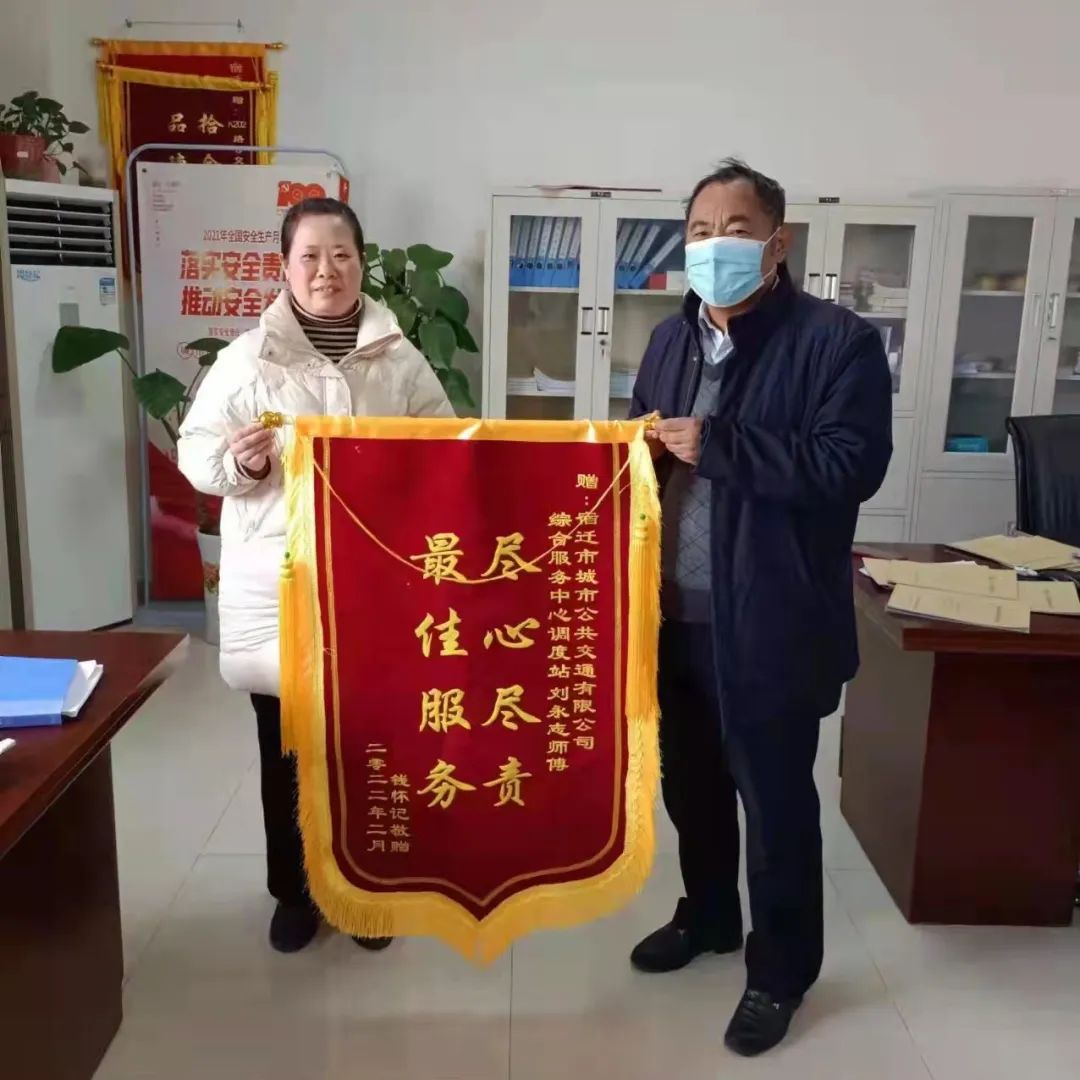 近日,市民錢先生將一面寫有“盡心盡責,最佳服務”的錦旗送到了公交公司綜合服務中心調度站,感謝K202路駕駛員劉永志三個月前的見義勇為、熱心相助。
