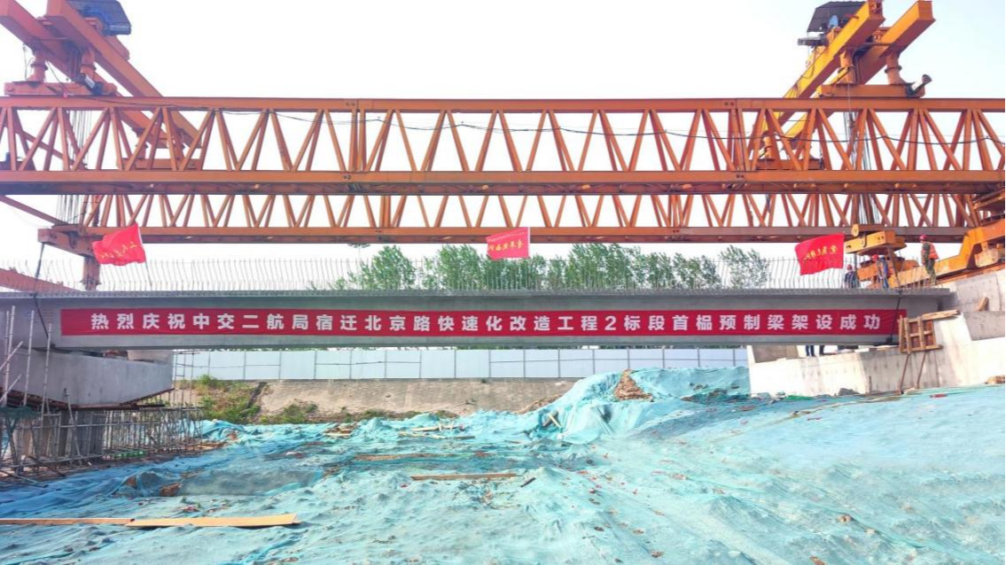 4月27日,在北京路快速化改造工程施工現場,預制箱梁平穩(wěn)落在兩榀蓋梁之間的指定位置,這標志著該項目首片預制箱梁成功架設,拉開了北京路全線箱梁架設施工的序幕。