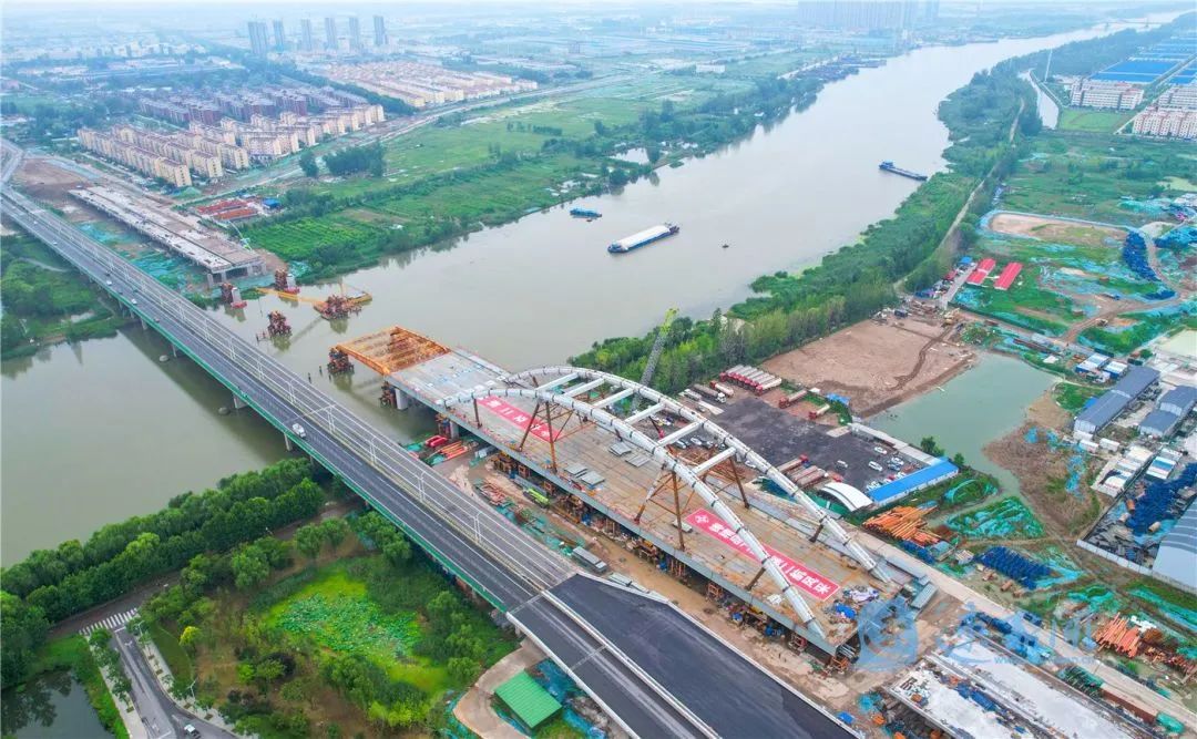 7月29日,宿遷市北京路快速化改造工程跨京杭運河特大橋開始第二輪頂推施工。