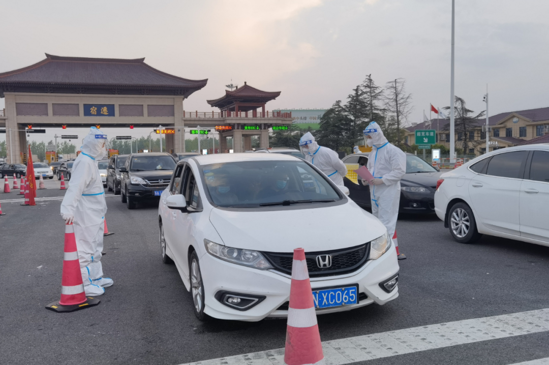還記得那時,天剛亮,范金勝和李健便提前到達(dá)寧宿徐高速公路宿遷主線收費站,穿上防護(hù)服交接班后,便自覺站到指定崗位。八人一組的隊伍,各自都有明確的任務(wù)分工,每有一輛車駛?cè)氤稣究谶M(jìn)入檢查區(qū)域,都會有相應(yīng)的防疫志愿者主動上前仔細(xì)篩查,發(fā)現(xiàn)高風(fēng)險地區(qū)來宿車輛便主動迎上去,檢查車上人員健康碼和行程碼,查驗48小時內(nèi)核酸檢測報告。