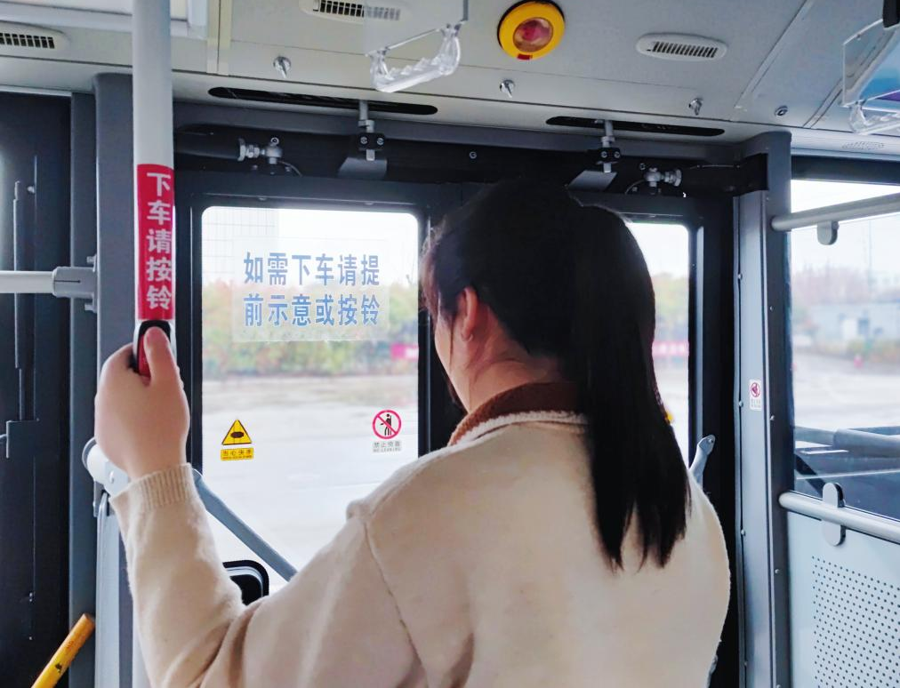 據(jù)公交公司營運(yùn)部經(jīng)理朱翊介紹,這是公司2023年度“為民辦實(shí)事”項(xiàng)目之一——全面優(yōu)化“響應(yīng)式”??抗环?wù)。所謂“響應(yīng)式”???,就是車輛到站前,需要下車的乘客提前按響下車鈴,駕駛員根據(jù)響鈴提示靠站停車,避免了乘客因示意不明顯或未做示意而錯(cuò)過下車的不便與尷尬。目前,公交公司已為86條線路、1300余輛公交車增設(shè)提示標(biāo)語,更新按鈴裝置。