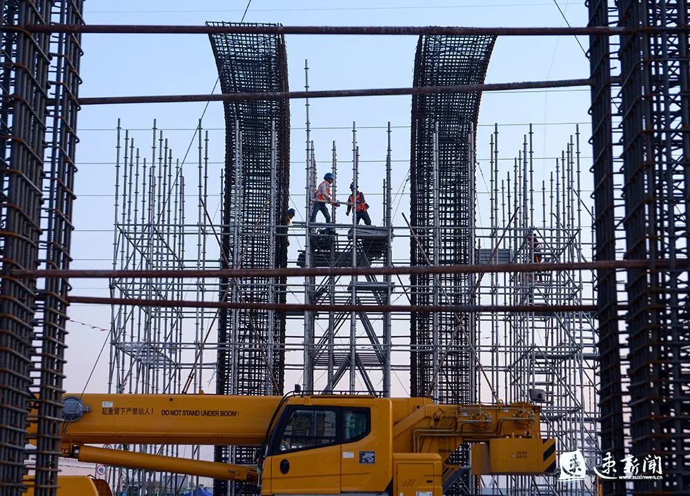 11月6日,在宿遷市張家港大道一期快速化改造工程現(xiàn)場,工人們正在緊張施工。