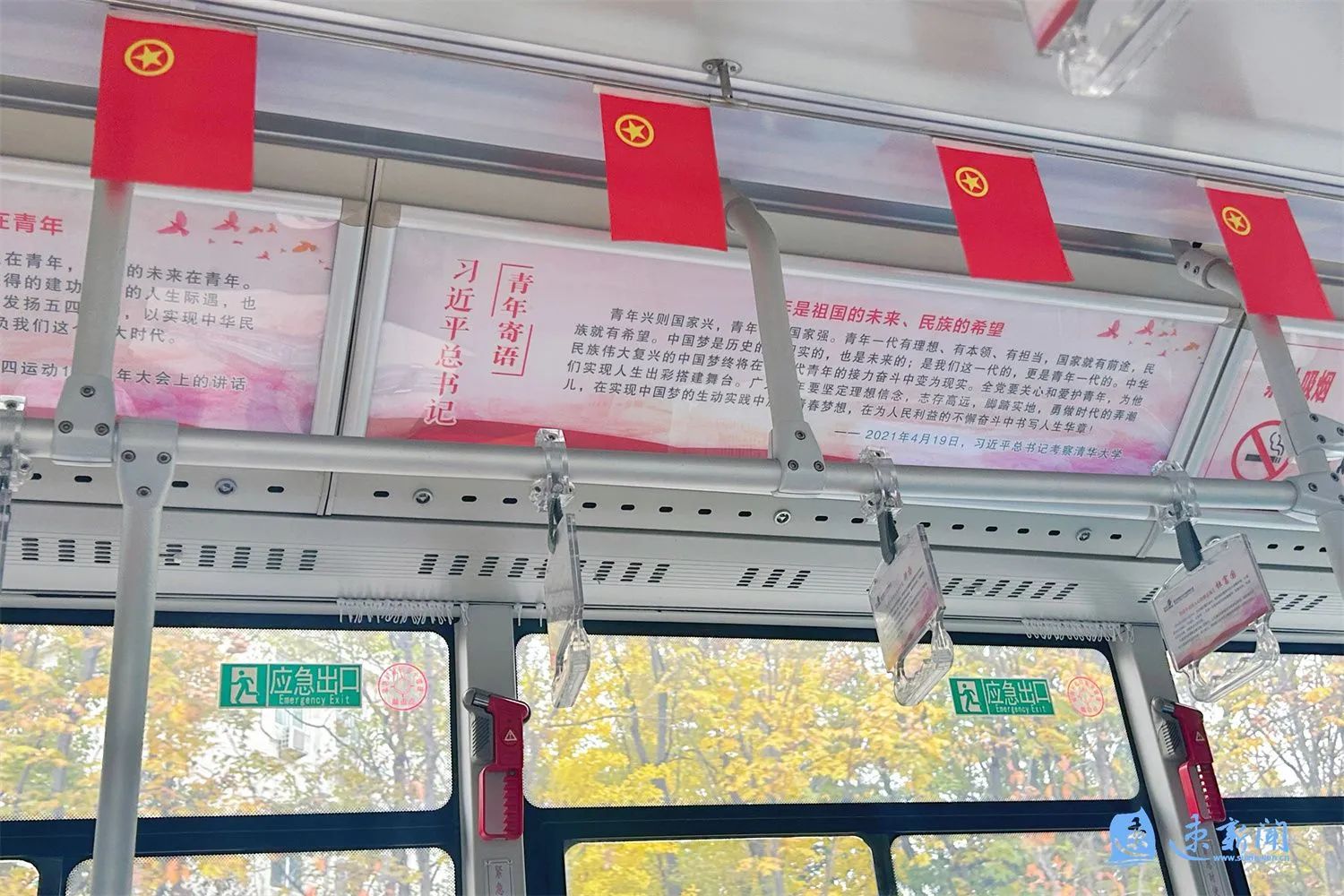 您好,歡迎乘坐103路公交車……”12月19日早上7點,記者在乘坐103路公交車時看到,車廂內干凈明亮,禁煙標識、乘車規(guī)則、線路圖等一應俱全。一幅幅印有社會主義核心價值觀、勤儉節(jié)約、保護環(huán)境等內容的宣傳海報讓公交車成為流動的風景。