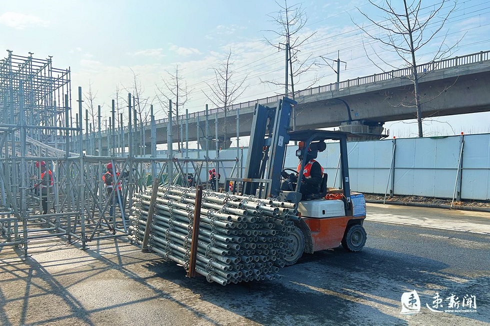 “我們工人大部分是外地的,目前已陸續(xù)返崗復(fù)工。”宿遷市港城路上跨鐵路專用線橋梁工程施工單位現(xiàn)場負(fù)責(zé)人介紹,今天上午六點多就開工了,大家齊心協(xié)力、分工協(xié)作,正在同步開展現(xiàn)澆箱梁預(yù)應(yīng)力張拉和支架搭設(shè)。