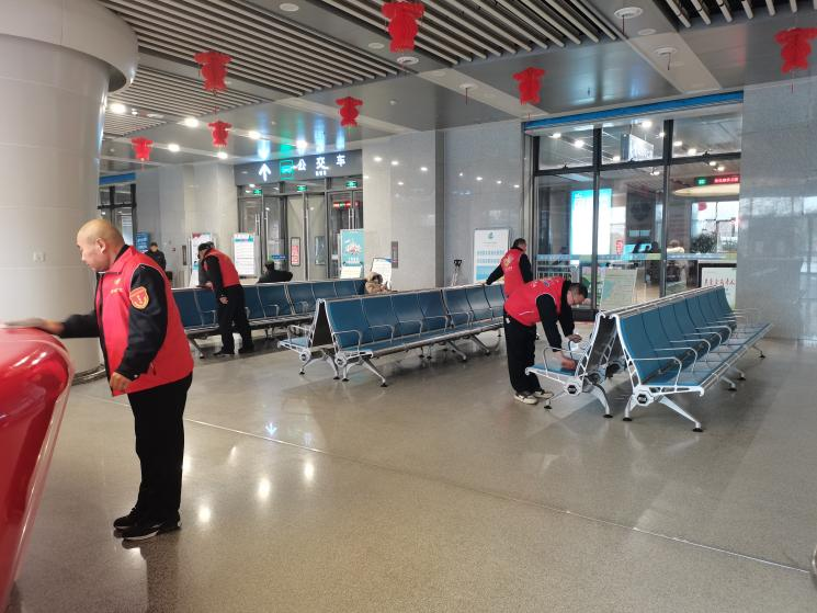 與此同時,在高鐵公交樞紐站,身穿紅色馬甲的志愿者們分工明確、不停忙碌,有的負(fù)責(zé)維護(hù)現(xiàn)場秩序,有的則熱心導(dǎo)乘、幫扶老弱。待人潮散去后,他們又一起將候車區(qū)座椅擦拭干凈。他們的用心服務(wù)得到了來往乘客的一致稱贊,在志愿服務(wù)站穿梭的“志愿紅”成為一道亮麗的風(fēng)景線。