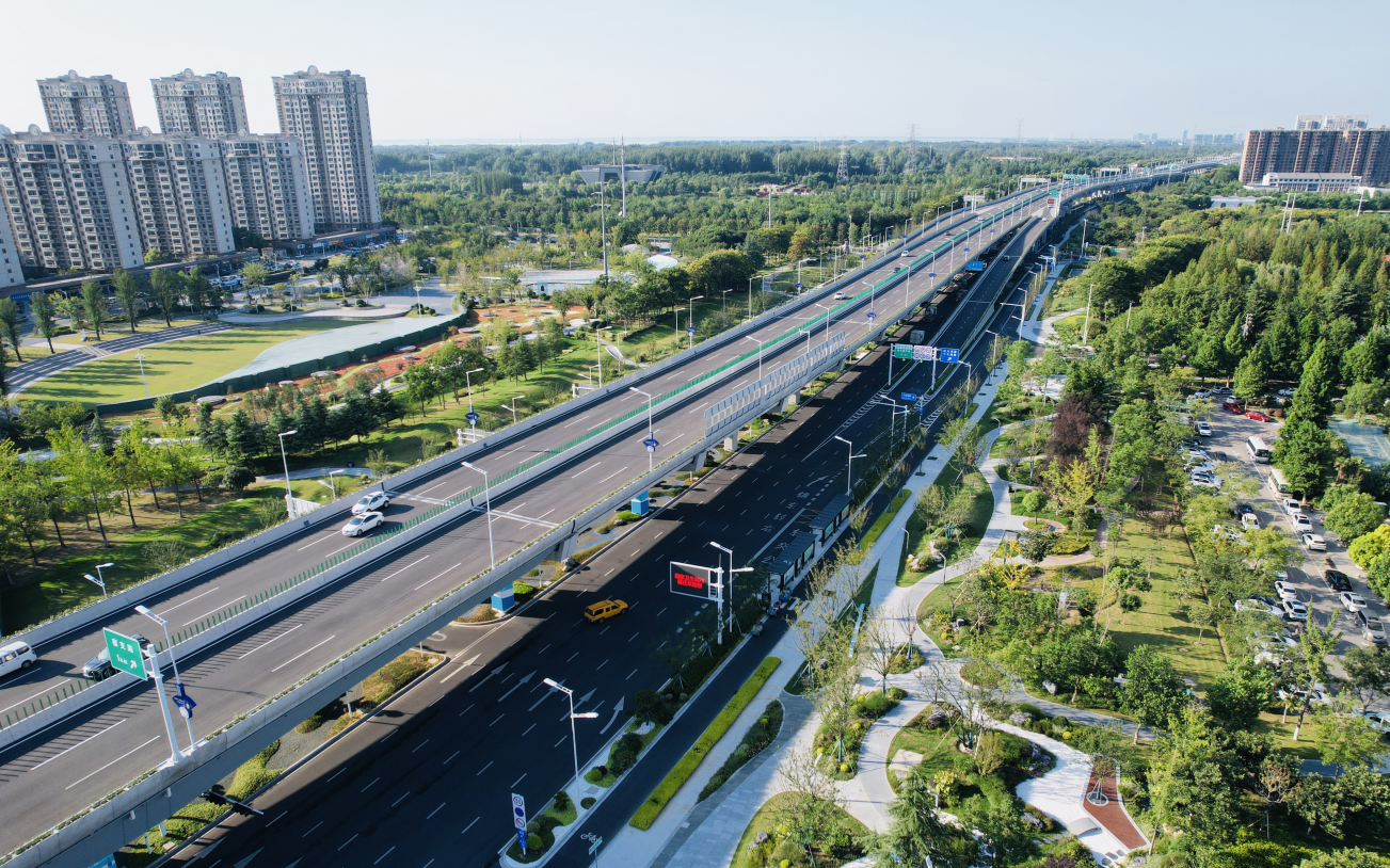 此次高鐵公司獲獎的“城市預(yù)制裝配式橋梁高性能結(jié)構(gòu)體系與快速建造技術(shù)研究”主要應(yīng)用于宿遷市迎賓大道二期快速化改造工程,預(yù)制裝配率達(dá)到85.4%,成為江蘇省首個全裝配式城市快速路改造項目。實施預(yù)制裝配、智能建造不僅實現(xiàn)了結(jié)構(gòu)輕量化、設(shè)計集約化、拼裝高效化、連接長效化、管控智能化,而且能夠滿足城市密集區(qū)高架橋建設(shè)對環(huán)境干擾少、施工工期短、耐久性能好、安全韌性強的總體要求。經(jīng)中國交通運輸協(xié)會組織專家委員會鑒定,該成果總體上達(dá)到國際領(lǐng)先水平,經(jīng)濟社會效益顯著,推廣應(yīng)用前景廣闊。迎賓大道二期快速化改造工程作為宿遷市快速路網(wǎng)“二環(huán)十射”的重要組成部分,項目建成通車后,極大緩解了中心城區(qū)的交通壓力,增強了中心城市集聚和輻射功能,在2023年度市政府100個民生實事項目中獲得好評率99.5%,位列第二。