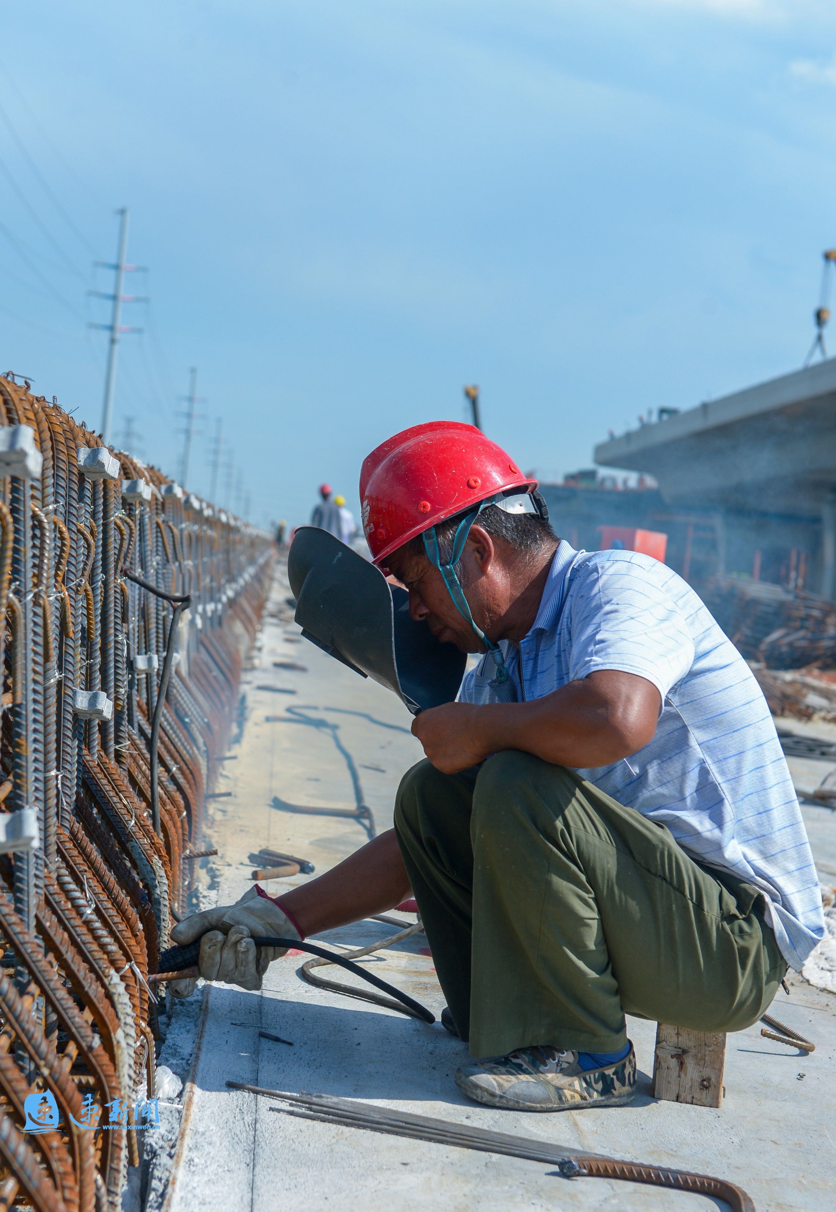 7月23日,在宿遷市宿豫區(qū)酒都路快速化改造工程現(xiàn)場,建設者不懼高溫“烤”驗,加緊施工作業(yè),全力推進項目建設進度。