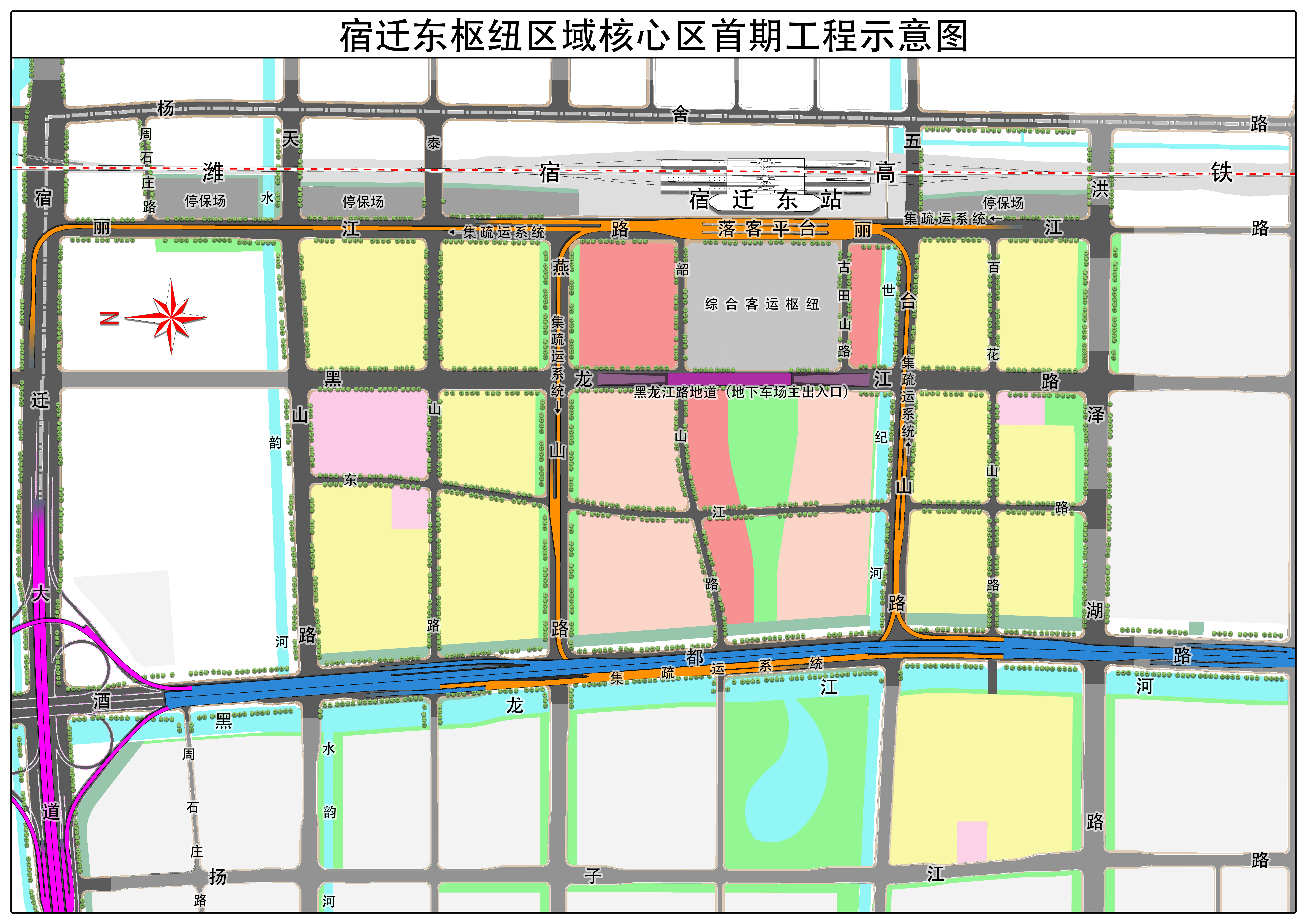 宿遷東樞紐區(qū)域核心區(qū)首期工程項(xiàng)目涵蓋五臺(tái)山路、麗江路、燕山路高鐵集輸運(yùn)進(jìn)出站高架工程、核心區(qū)過鐵通道、市政路網(wǎng)、停保場等工程。首期工程項(xiàng)目的實(shí)施,將有助于構(gòu)建高鐵宿遷東站集疏運(yùn)體系,完善核心區(qū)市政路網(wǎng)、管網(wǎng)、水利等設(shè)施,為核心區(qū)開發(fā)建設(shè)提供必要的基礎(chǔ)設(shè)施條件。
