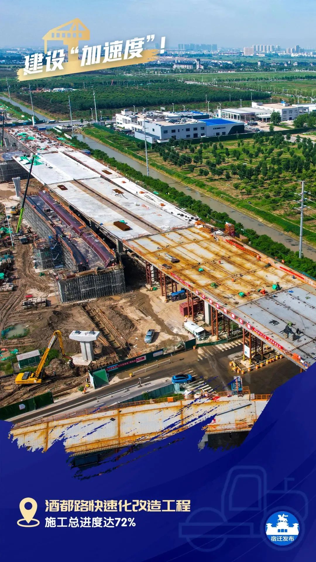 酒都路快速化改造工程南起北京路互通,北至宿遷大道南側(cè),道路全長5.6公里。主線為城市快速路,設(shè)計(jì)速度80公里/小時(shí),雙向6—8車道。輔路為城市主干路,設(shè)計(jì)速度50公里/小時(shí),雙向4—6車道。