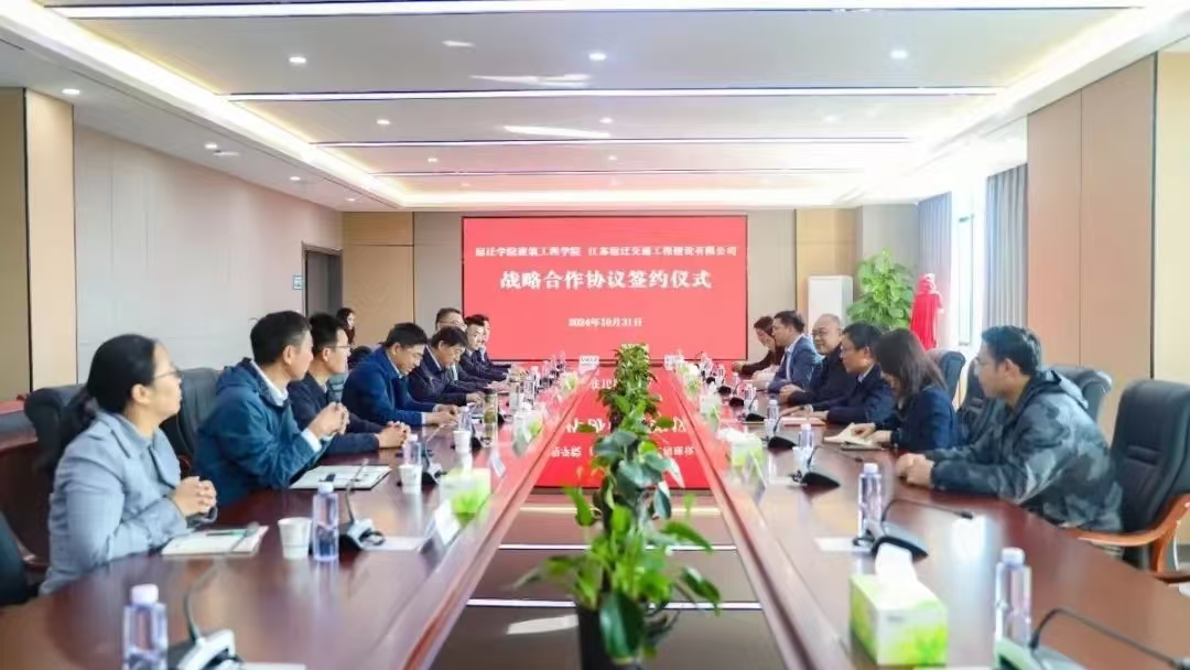 10月31日,宿遷交建與宿遷學(xué)院建筑工程學(xué)院簽署戰(zhàn)略合作協(xié)議,并舉行“交通基礎(chǔ)設(shè)施低碳材料與智能建造工程研究中心”揭牌儀式。學(xué)院黨委書記郭振宇、院長朱方之,宿遷交通集團(tuán)副總經(jīng)理黃雪林出席活動。