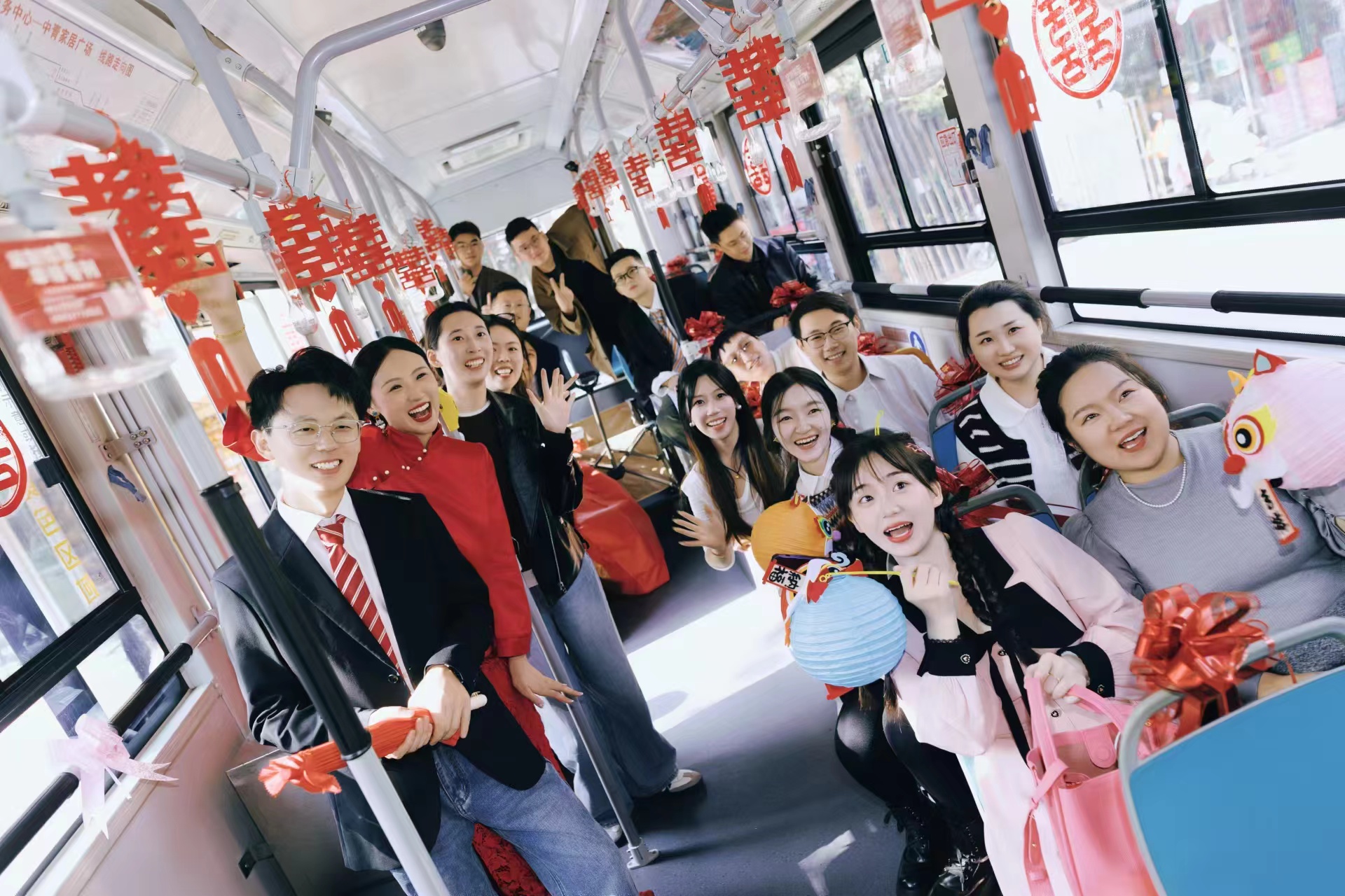公交公司相關(guān)負(fù)責(zé)人表示,“和傳統(tǒng)迎親車隊(duì)相比,定制公交主題婚車空間大、接地氣、更時(shí)尚、更環(huán)保,希望通過這種方式,為新人們提供一種獨(dú)特的婚禮體驗(yàn)。”