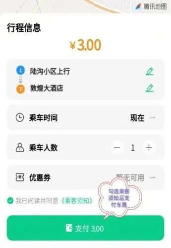 1.下單時,請仔細核對上車站點信息,避免因站點位置錯誤導(dǎo)致未能正常乘車(避免定位到馬路對面同名站點),影響您的行程。