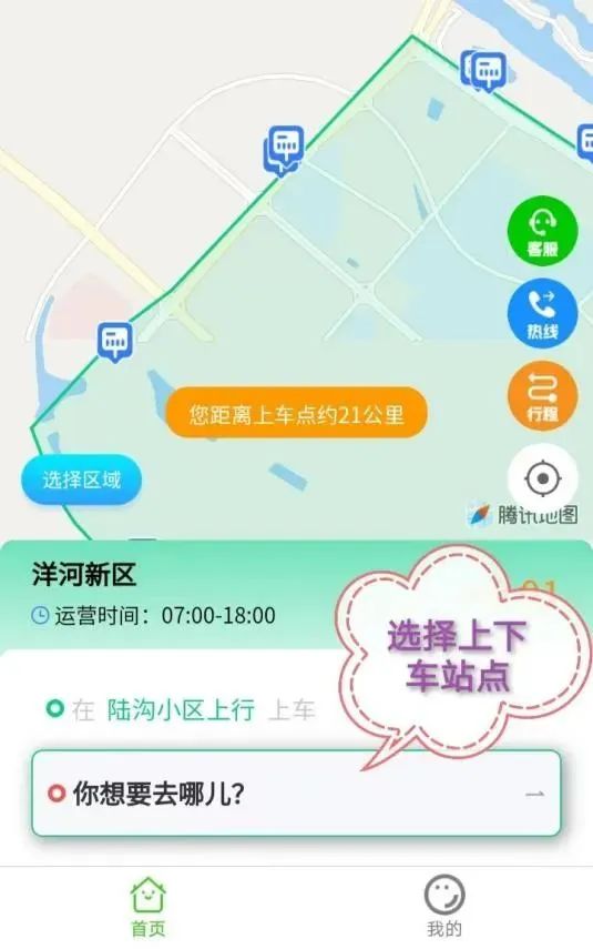 ②:進入小程序后,選擇上下車站點。