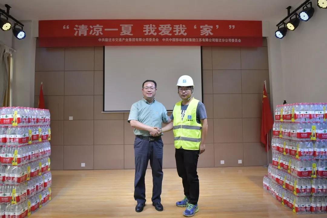 夏日炎炎送清涼,濃濃關(guān)懷暖人心。8月2日上午,市交通集團(tuán)攜手中國移動通信集團(tuán)江蘇有限公司宿遷分公司(以下簡稱中國移動宿遷分公司)來到高鐵工程綜合客運(yùn)樞紐工程一線“黨建·家”,開展“清涼一夏,我愛我‘家’”活動。為奮戰(zhàn)在高鐵項目一線的建設(shè)者們送來了100箱礦泉水等清涼用品。