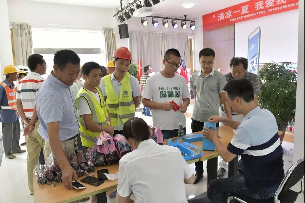 活動期間,中國移動宿遷分公司領(lǐng)導(dǎo)一行還給建設(shè)者們送來了雨傘、牙刷、毛巾、洗發(fā)水、香皂等生活用品,并給一線建設(shè)者免費(fèi)更換手機(jī)貼膜和清洗手機(jī)服務(wù)。