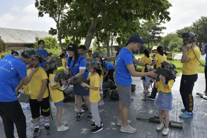 訓(xùn)練分組后,孩子們紛紛投入到充滿軍營特色的真人CS對抗賽中,“敵我”雙方,相互交戰(zhàn)。豐盛的午餐后,孩子們在志愿者的幫助下,開始叢林冒險,水槍大戰(zhàn)等游戲環(huán)節(jié)。樂趣橫生的活動,不僅促進了孩子們之間的友誼,更培養(yǎng)了他們挑戰(zhàn)困難、克服困難的信心和勇氣。