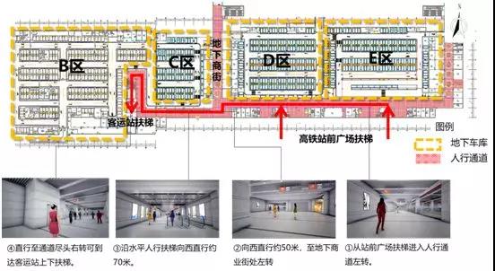 答:到站接客的車輛一律進(jìn)入地下停車庫等待(配套有P1、P2、P3三個(gè)地下停車庫,分A、B、C、D、E五個(gè)區(qū),共約800個(gè)停車位),乘客下高鐵后,步行至相應(yīng)的停車庫。