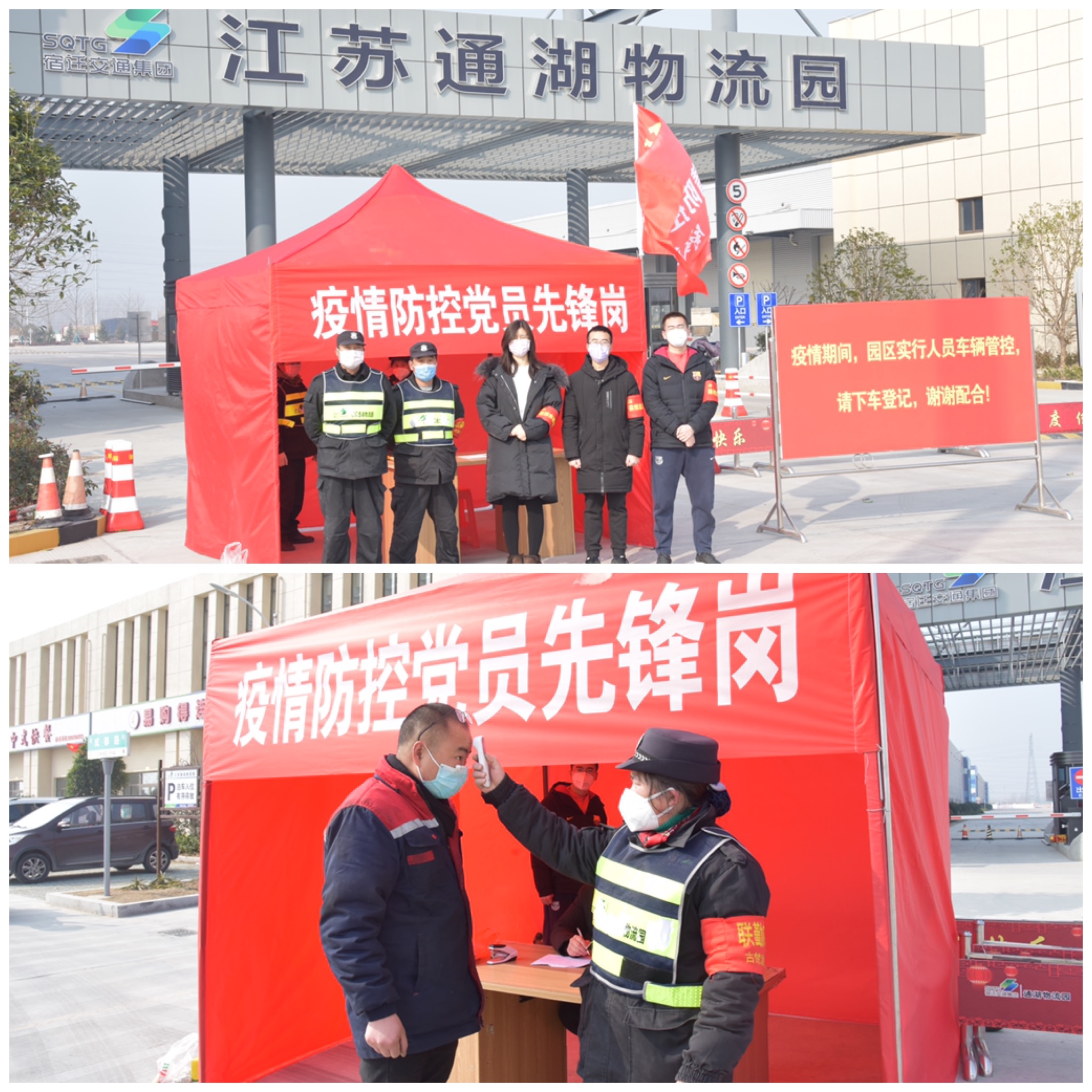 自疫情防控工作開展以來(lái),物流園黨支部充分發(fā)揮基層戰(zhàn)斗堡壘作用,組織帶領(lǐng)黨員堅(jiān)守在抗疫一線。活動(dòng)當(dāng)天,支部全體黨員及公司中層干部分組對(duì)園區(qū)大門、倉(cāng)儲(chǔ)區(qū)、工程現(xiàn)場(chǎng)進(jìn)行執(zhí)勤和巡查,對(duì)進(jìn)出車輛、人員逐一進(jìn)行登記及體溫監(jiān)測(cè),對(duì)園區(qū)內(nèi)人員及企業(yè)進(jìn)行勸導(dǎo),督促做好消毒、佩戴口罩等自我防護(hù)工作,堅(jiān)決杜絕疫情進(jìn)入園區(qū)。