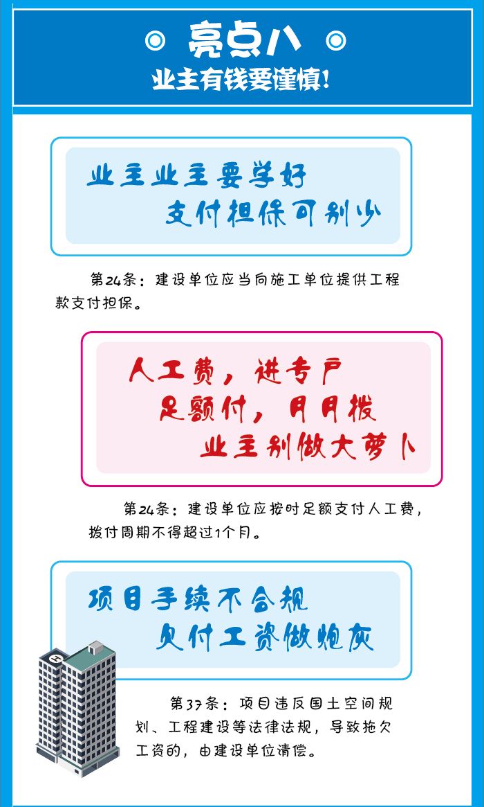 該條還規(guī)定了總包單位對(duì)分包單位的用工和工資發(fā)放進(jìn)行監(jiān)督的責(zé)任,這跟之前的總包單位單純的收取配合費(fèi)而對(duì)放任分包單位的用工及工資發(fā)放。這也為保障農(nóng)民工能切實(shí)拿到工資提供了法律依據(jù)。