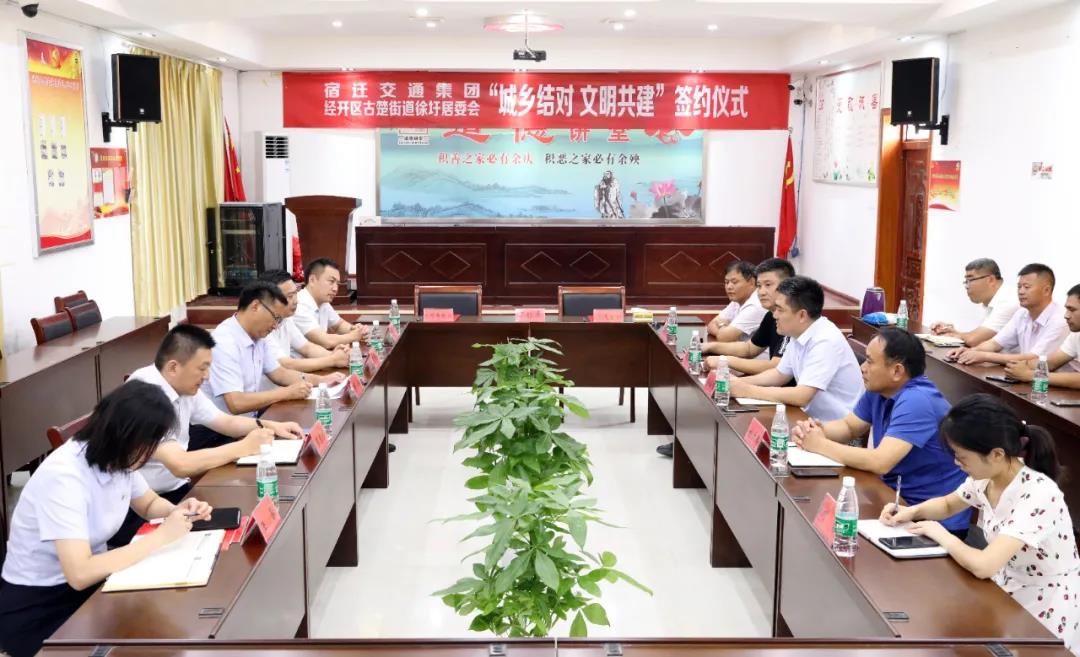 為充分發(fā)揮“江蘇省文明單位”的示范帶動作用,積極履行國有企業(yè)社會責(zé)任,助力宿遷城鄉(xiāng)文明一體化建設(shè),8月27日上午,宿遷交通集團(tuán)黨委副書記周斌一行來到宿遷經(jīng)濟(jì)技術(shù)開發(fā)區(qū)古楚街道徐圩居委會,就“城鄉(xiāng)結(jié)對、文明共建”活動進(jìn)行座談交流,并與徐圩居委會簽訂了為期3年的結(jié)對共建協(xié)議。古楚街道黨委書記董恒賓,徐圩居委會黨總支書記、居委會主任臧士振等領(lǐng)導(dǎo)參加活動。