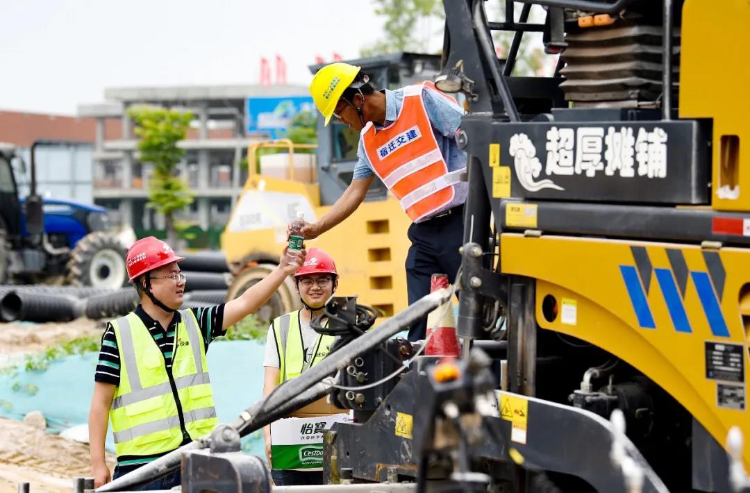 周大松迅速調整施工計劃,“見縫插針”——前面路基鋪設好一段,他們就跟上去攤鋪一段路面。