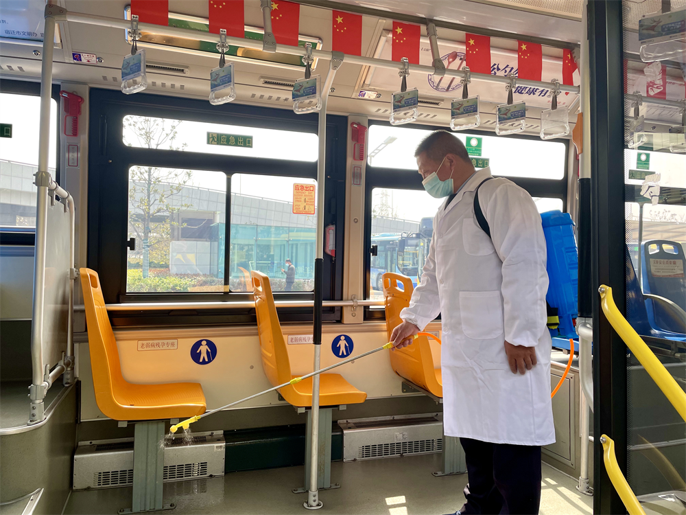 公交公司嚴(yán)格落實(shí)營運(yùn)車輛和場站重點(diǎn)部位消殺工作,堅(jiān)決做到“一趟一消毒,行車中通風(fēng)”,發(fā)車前對駕駛員進(jìn)行體溫測量并登記造冊,做到源頭預(yù)防、有跡可查;營運(yùn)中駕駛員對乘客進(jìn)行體溫測量并查驗(yàn)“兩碼”、提醒其佩戴好口罩,為保證廣大市民安全出行保駕護(hù)航。