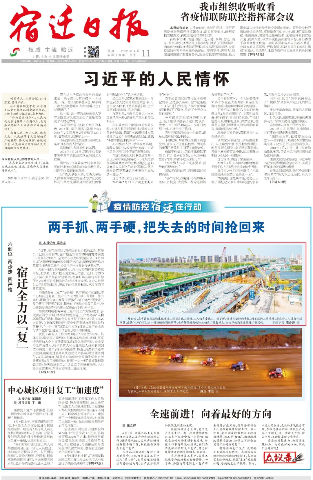 4月11日,《宿遷日報》頭版《疫情防控宿遷在行動》專欄聚焦集團(tuán)重點(diǎn)工程項(xiàng)目復(fù)工復(fù)產(chǎn)情況。