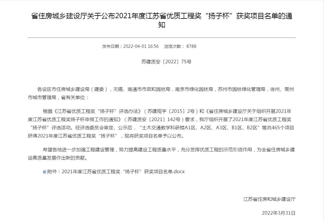近日,省住房和城鄉(xiāng)建設(shè)廳公布了2021年度江蘇省優(yōu)質(zhì)工程獎“揚子杯”獲獎項目名單,其中,宿遷交通集團代建的江蘇通湖物流園一期配載中心工程、宿遷市綜合客運樞紐建設(shè)工程景觀綠化施工項目名列其中,江蘇通湖物流園一期智能配載中心工程項目更是以宿遷市房建工程項目綜合評分第一名的好成績榮登榜首。