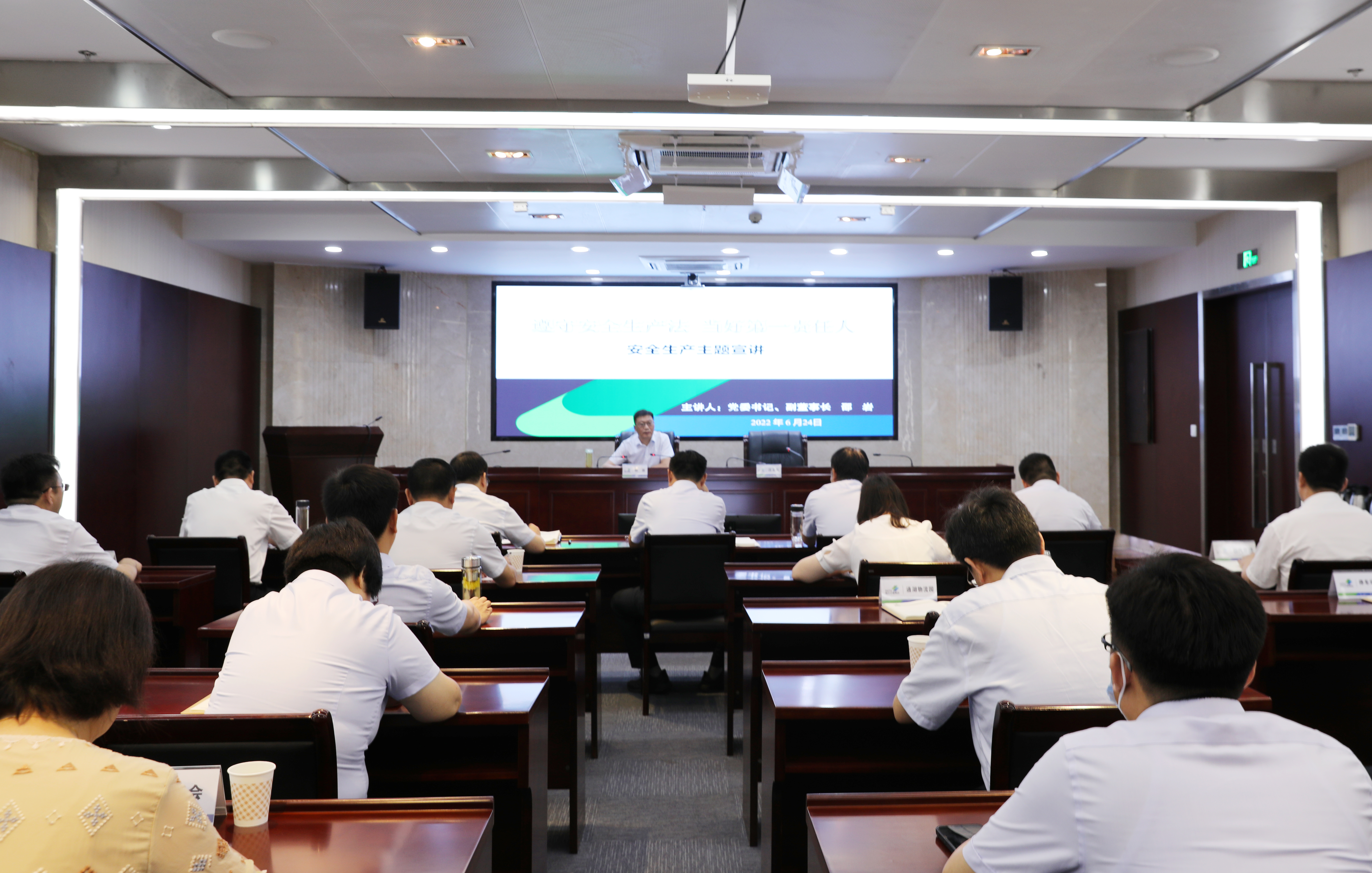 根據(jù)宿遷市2022年“安全生產(chǎn)月”活動(dòng)部署安排,6月24日上午,宿遷交通集團(tuán)黨委書(shū)記、副董事長(zhǎng)邵巖以“遵守安全生產(chǎn)法 當(dāng)好第一責(zé)任人”為題作安全生產(chǎn)專(zhuān)題宣講,動(dòng)員集團(tuán)上下以守初心擔(dān)使命的政治自覺(jué)和政治擔(dān)當(dāng),始終把安全生產(chǎn)工作擺在首要位置,從嚴(yán)從實(shí)落實(shí)安全生產(chǎn)主體責(zé)任,以實(shí)際行動(dòng)迎接黨的二十大勝利召開(kāi)。集團(tuán)副總經(jīng)理汪衛(wèi)東主持會(huì)議。