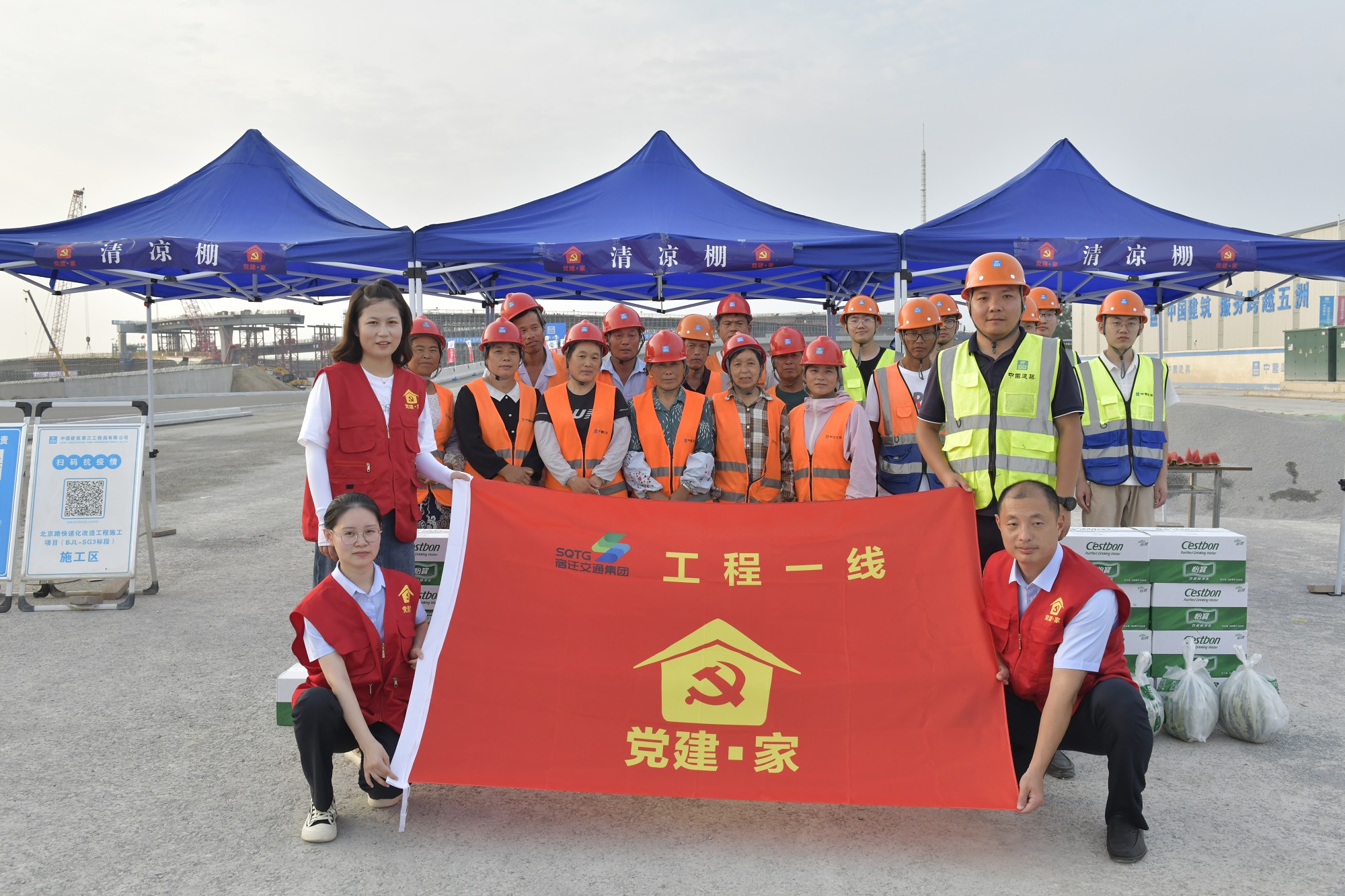 會前,黨員志愿者還到迎賓大道二期、北京路快速化改造工程建設(shè)一線“黨建·家”清涼驛站,開展“情系一線送清涼 關(guān)愛工友促安康”活動,為一線建設(shè)者送上西瓜、礦泉水、冰棍等解暑物品。