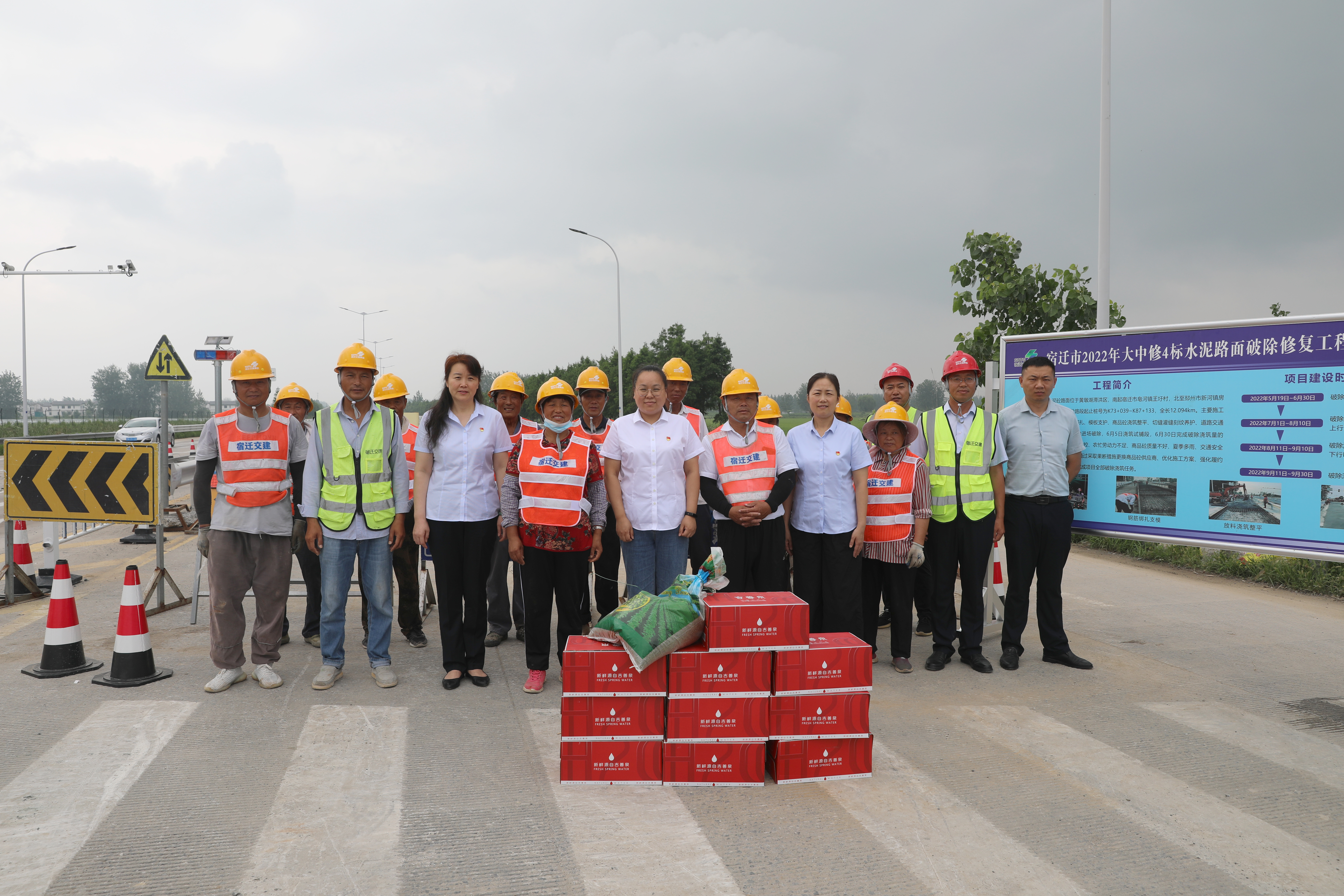 20日下午,宿遷交建黨總支召開上半年黨建工作推進(jìn)會,總結(jié)上半年工作情況,部署下半年重點(diǎn)工作任務(wù)。21日上午,公司黨總支聯(lián)合工會,帶領(lǐng)部分黨員來到建設(shè)現(xiàn)場、瀝青拌和廠等多個(gè)施工生產(chǎn)部門,為烈日下奮戰(zhàn)在一線的職工送去礦泉水、綠豆等物品,向一線職工代表表示敬意和慰問,感謝大家發(fā)揚(yáng)奮斗和奉獻(xiàn)精神,同時(shí)囑咐他們注意施工安全,做好防暑降溫工作。