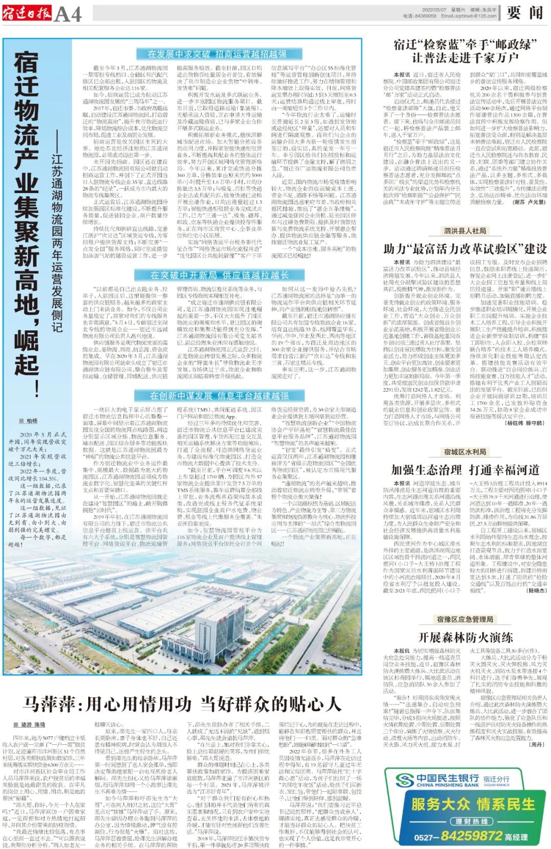 5月7日,宿遷日報以《宿遷物流產(chǎn)業(yè)集聚新高地,崛起!——江蘇通湖物流園運營兩年發(fā)展側(cè)記》為題,展現(xiàn)了通湖物流園運營兩年以來由無到有、由小到大、由弱到強的完美嬗變。