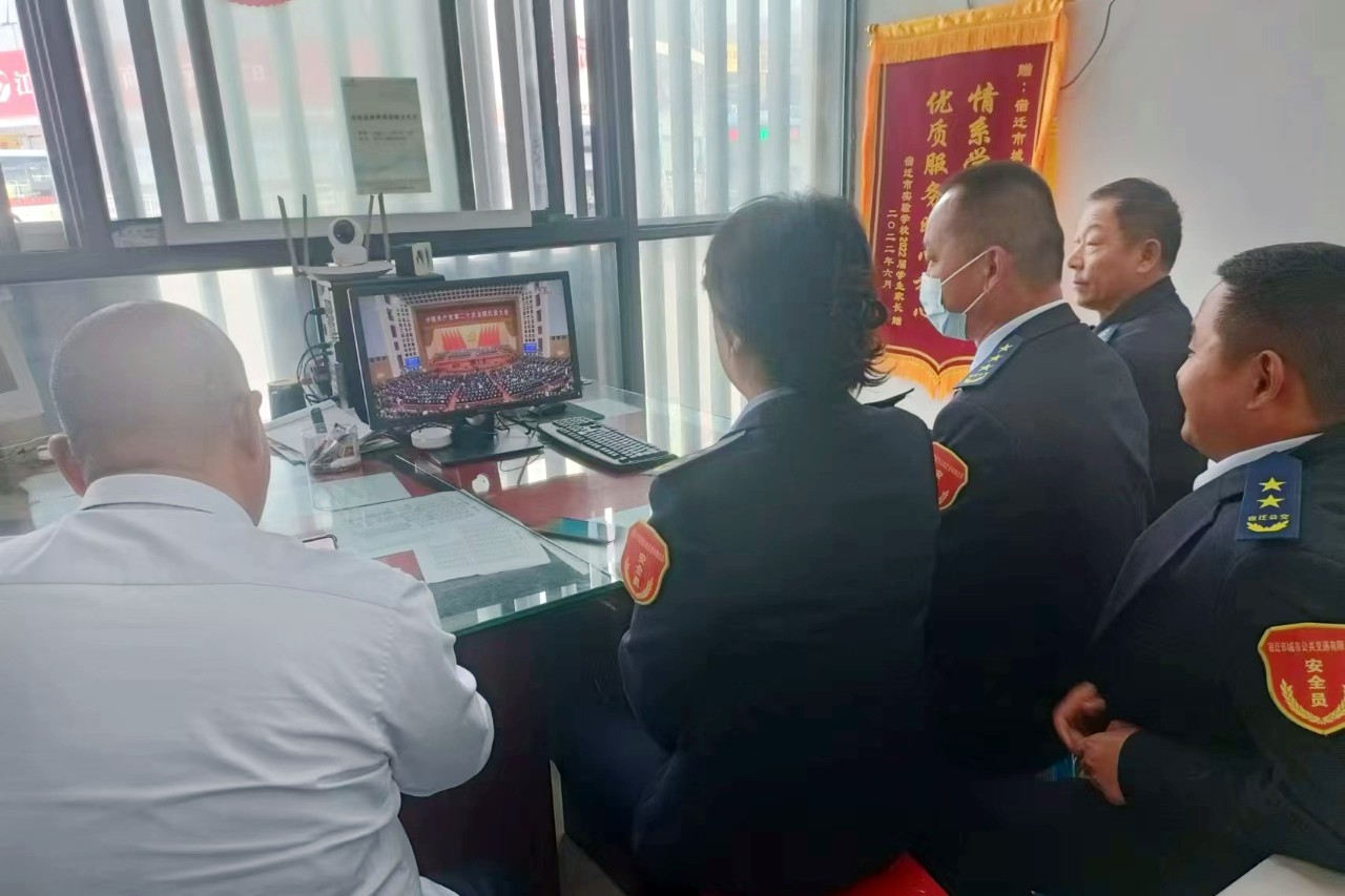 ▲停車場公司  組織收聽收看黨的二十大開幕會直播盛況
