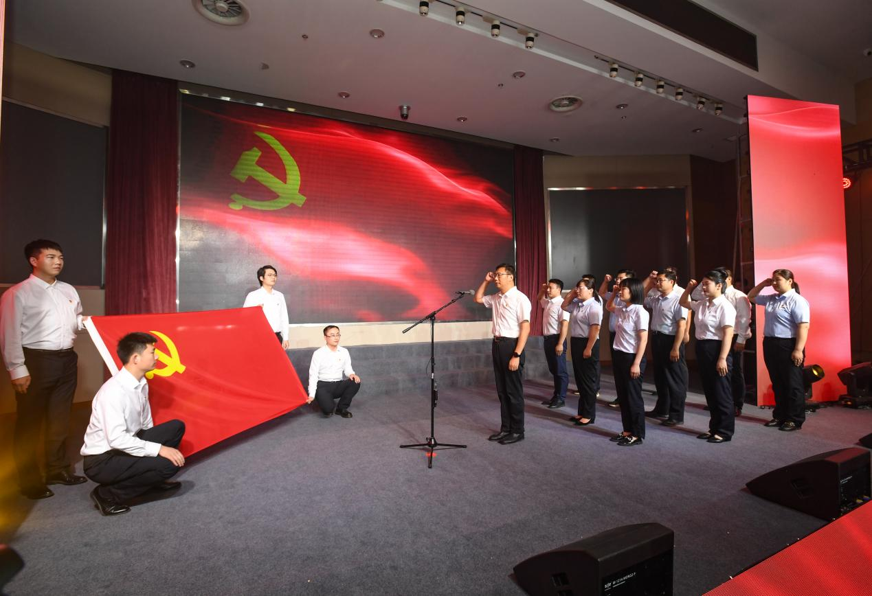 活動(dòng)現(xiàn)場(chǎng),邵巖帶領(lǐng)2023年度新發(fā)展黨員面向黨旗,高舉右拳、手握信念、莊嚴(yán)宣誓。集團(tuán)黨委副書記周斌、紀(jì)委書記田軍分別為2022年度“支部之星”代表頒獎(jiǎng)。