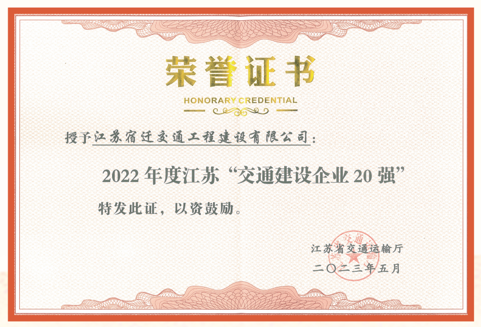 辛勤耕耘,終有收獲。近年來,公司經(jīng)營指標(biāo)不斷攀升,資質(zhì)拓展不斷升級,企業(yè)競爭力顯著增強,一大批省市勞模、首席技師、技術(shù)能手等領(lǐng)軍人才不斷涌現(xiàn)。取得“省交通運輸行業(yè)先進(jìn)基層黨組織”“江蘇交通建設(shè)企業(yè)20強”“第一屆江蘇省交通運輸行業(yè)文化品牌”“江蘇省文明單位”“宿遷市市長質(zhì)量獎”等多項省市級榮譽,多名優(yōu)秀員工榮獲“宿遷工匠”“宿遷市勞動模范”“新長征突擊手”等榮譽。