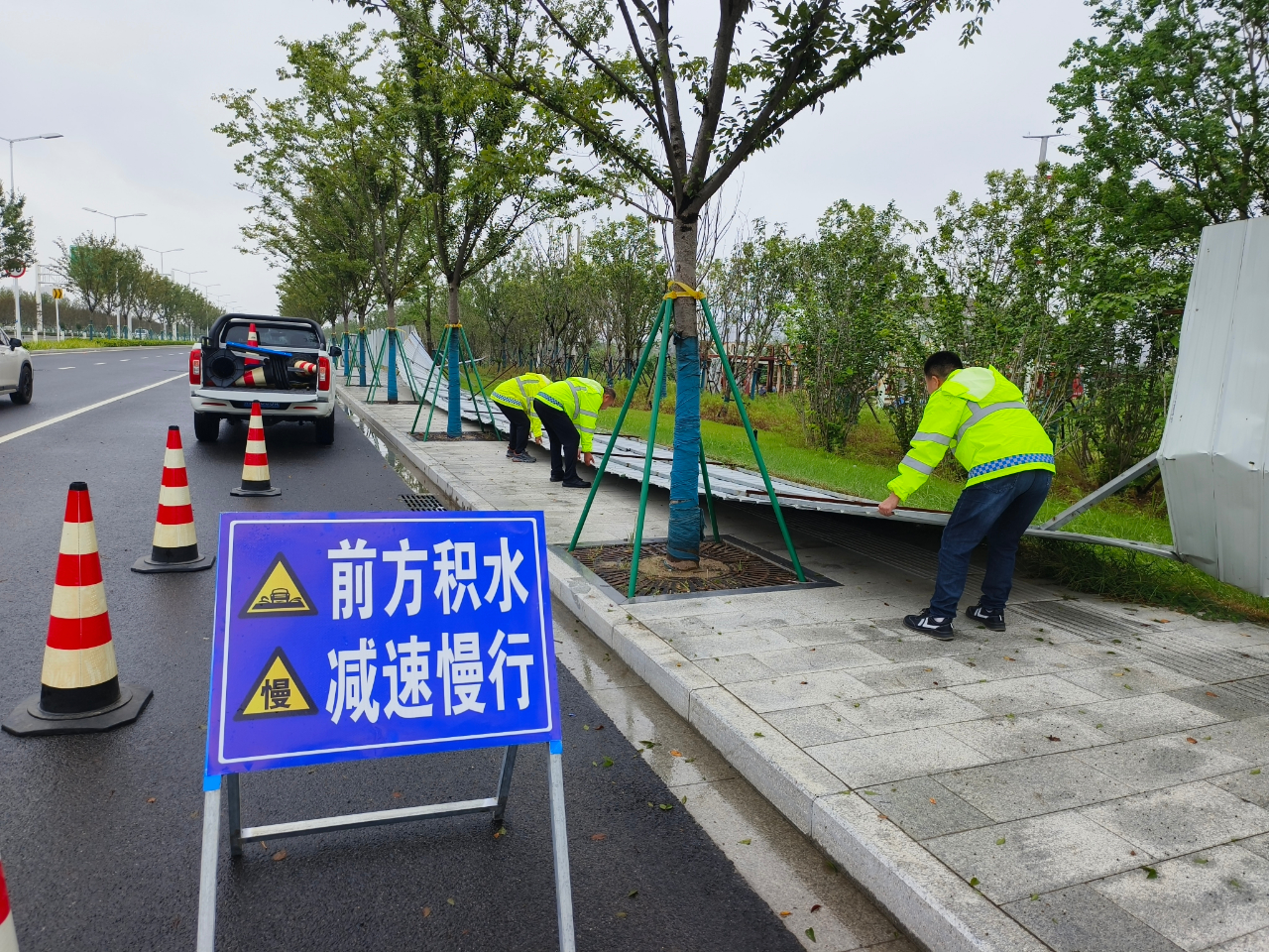 宿遷交建迅速成立應(yīng)急搶險(xiǎn)搶通小組,嚴(yán)格執(zhí)行24小時(shí)值班制和領(lǐng)導(dǎo)帶班制度,加強(qiáng)突發(fā)情況、突發(fā)事件信息采集、報(bào)送工作。工作人員深入一線加大對道路邊溝、橋梁橋下空間、排水系統(tǒng)、泵房設(shè)施等巡查力度,確保各路段排水設(shè)施和應(yīng)急供電設(shè)施正常運(yùn)行。同時(shí)對橋梁涵洞、路面低洼、地下通道等重點(diǎn)部位的安全警示標(biāo)志、標(biāo)牌、夜間信號指示燈進(jìn)行擺放加固。