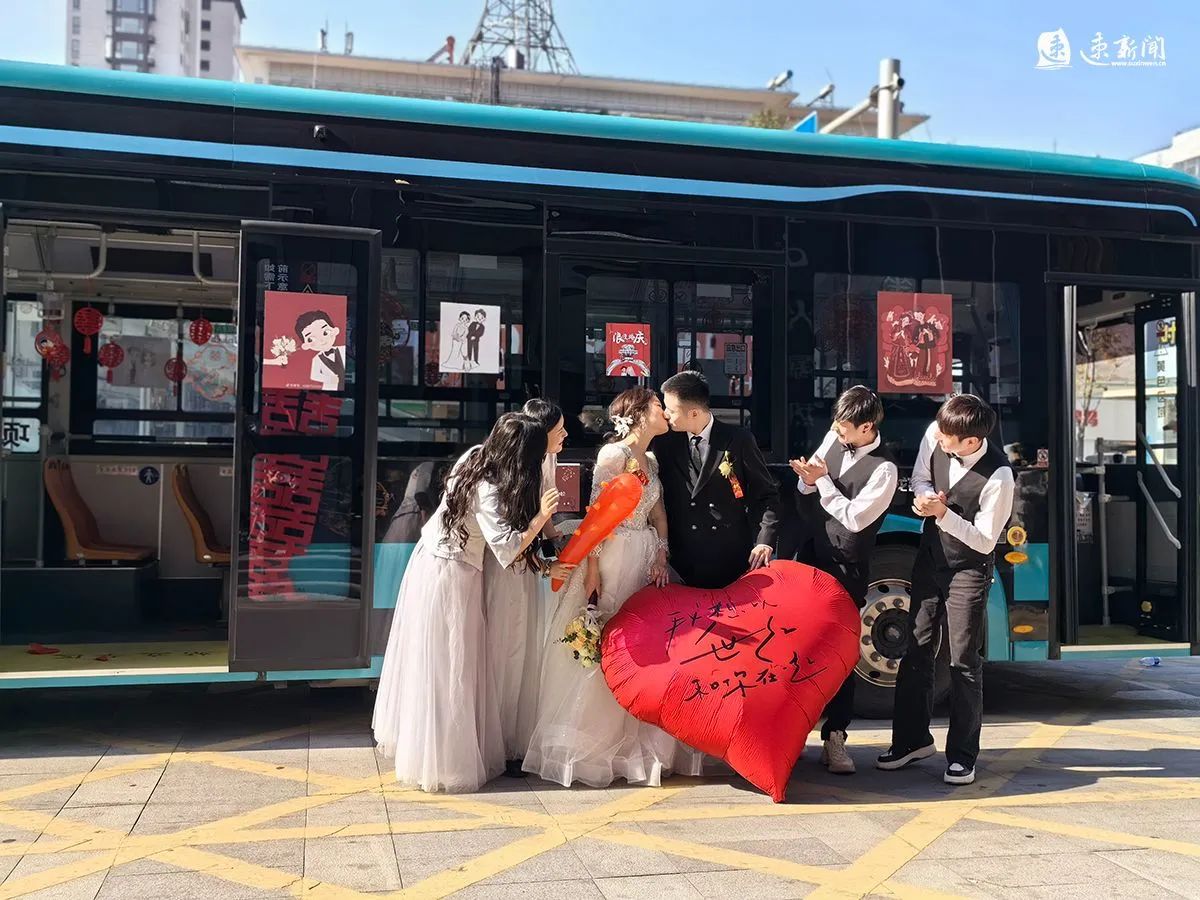 11月28日,在市區(qū)金鷹國(guó)際花園小區(qū)附近,一輛公交車(chē)變婚車(chē),吸引不少市民的目光,回歸樸素的浪漫還在繼續(xù)。